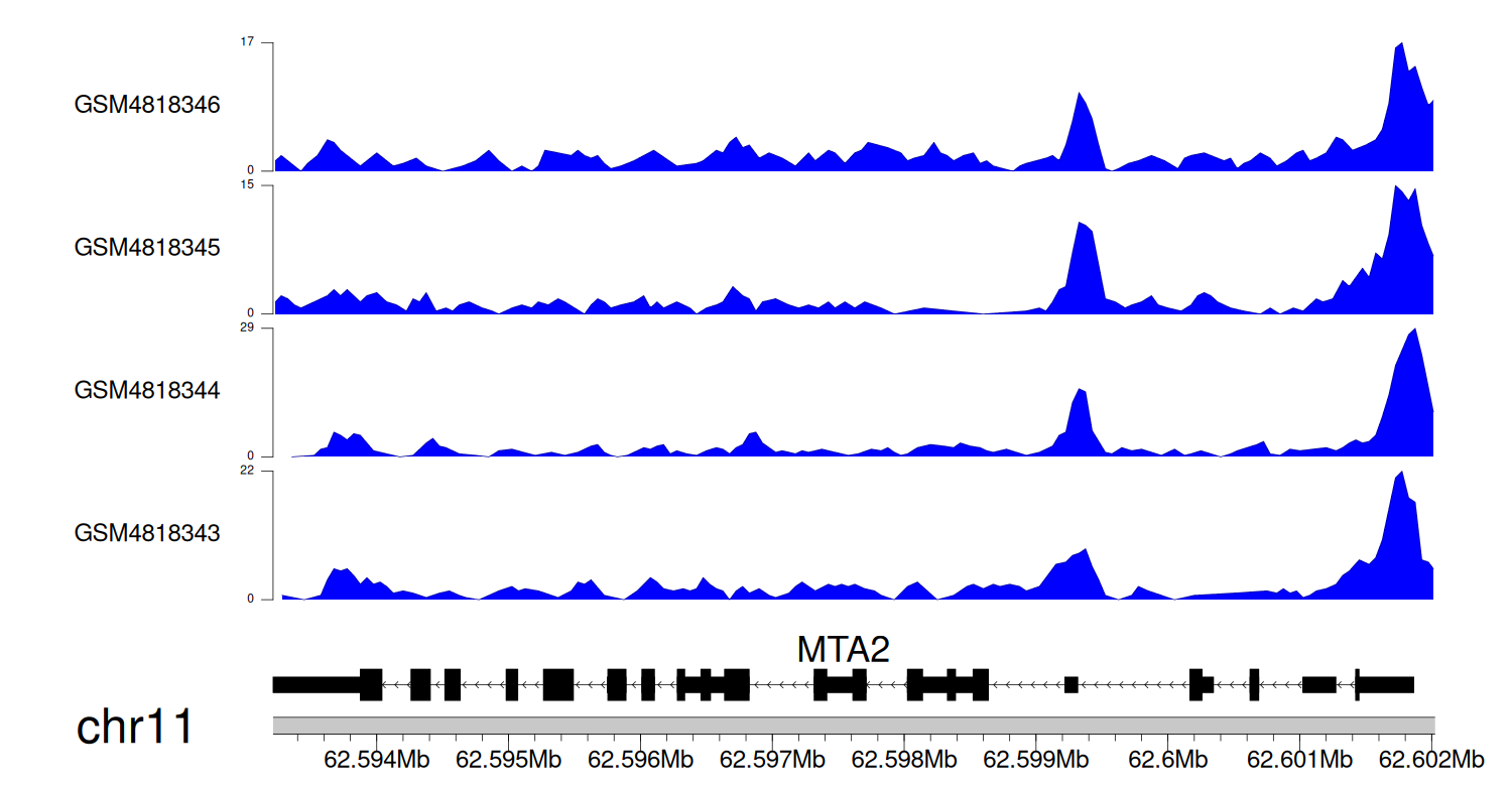 > Dataset: GSE131257 - MTA2 peak across samples