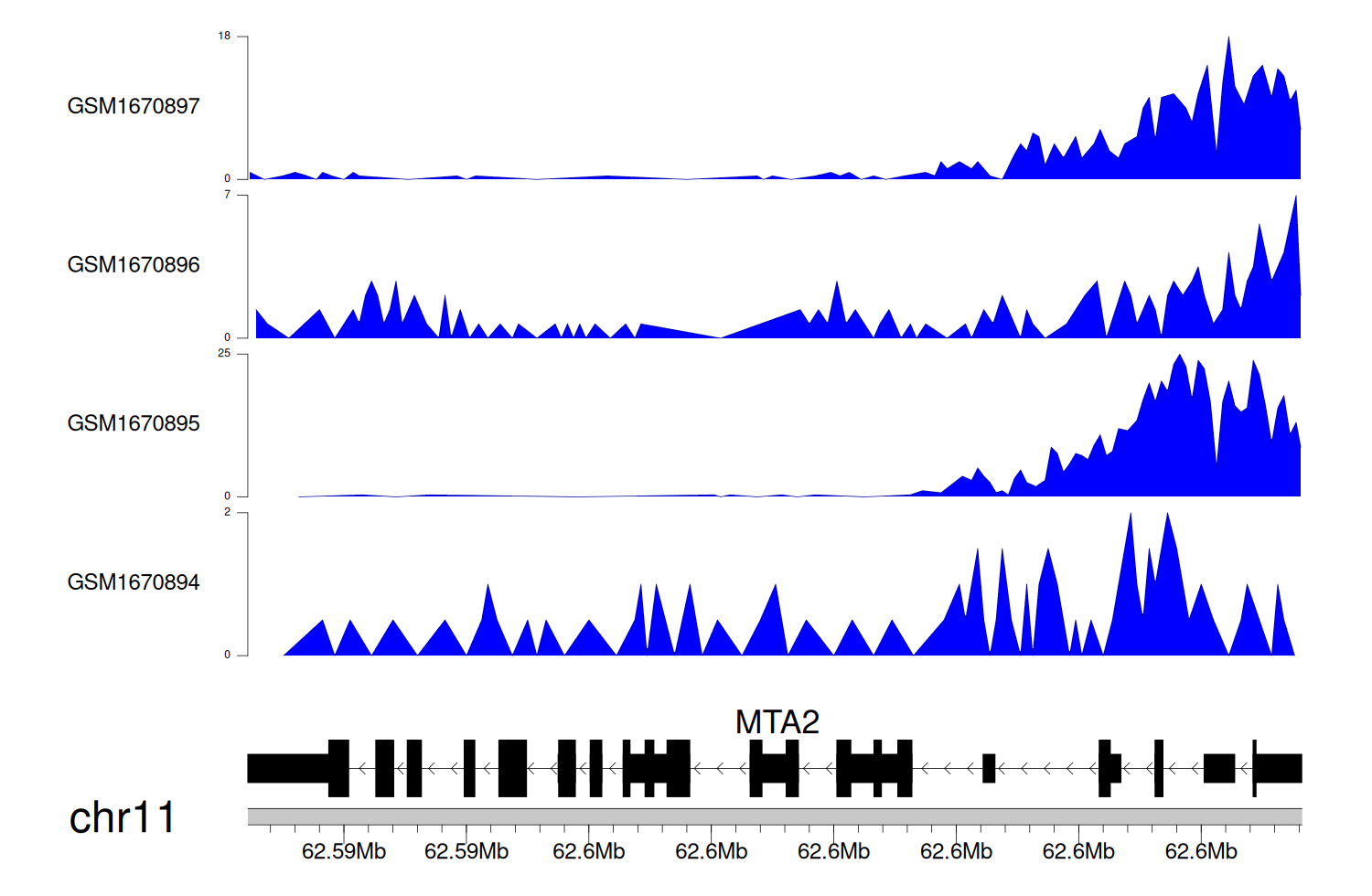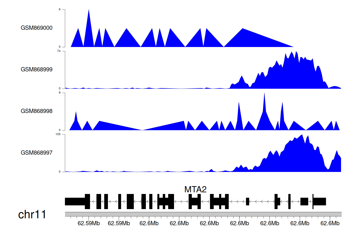 > Dataset: GSE68402 - MTA2 peak across samples