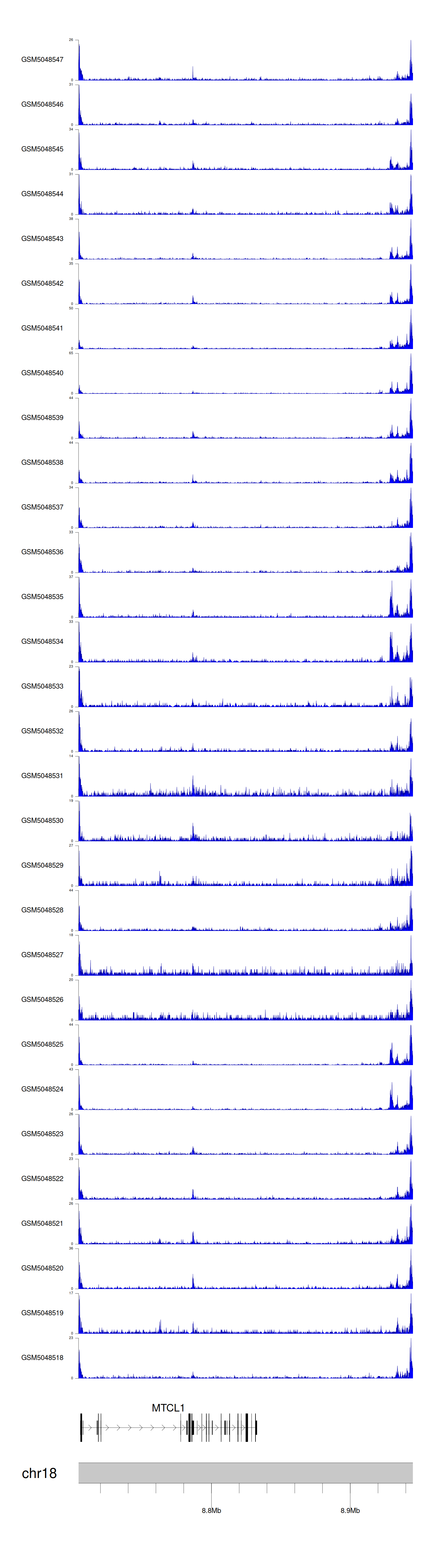 > Dataset: GSE30738 - MTCL1 peak across samples