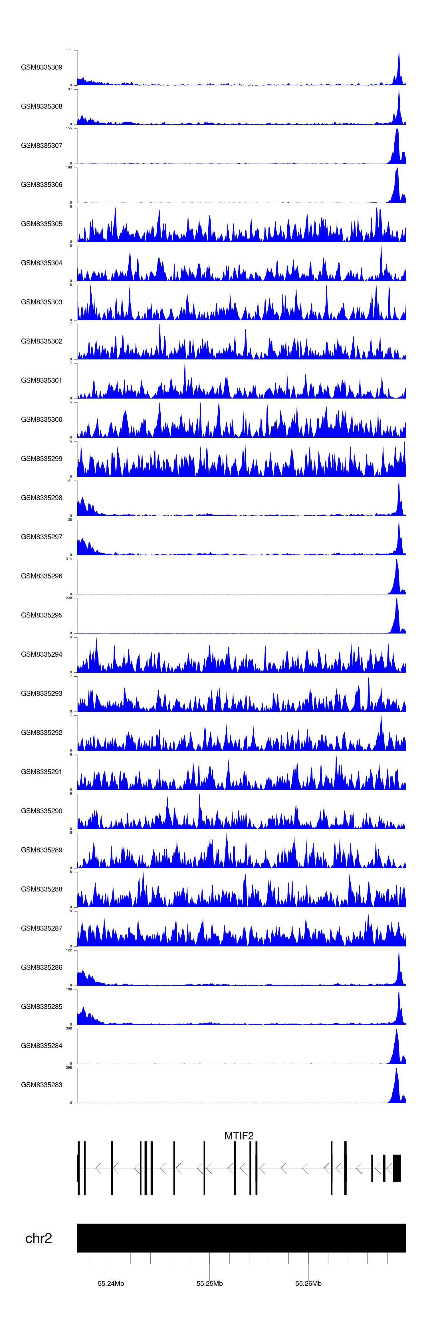 > Dataset: GSE270130 - MTIF2 peak across samples