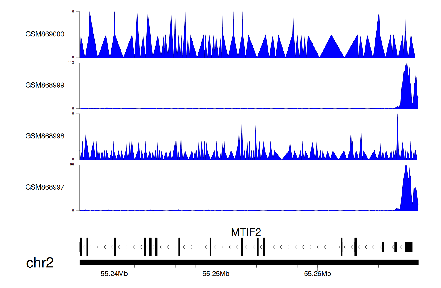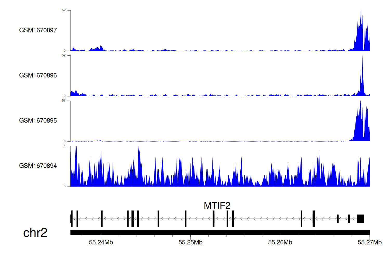 > Dataset: GSE68402 - MTIF2 peak across samples