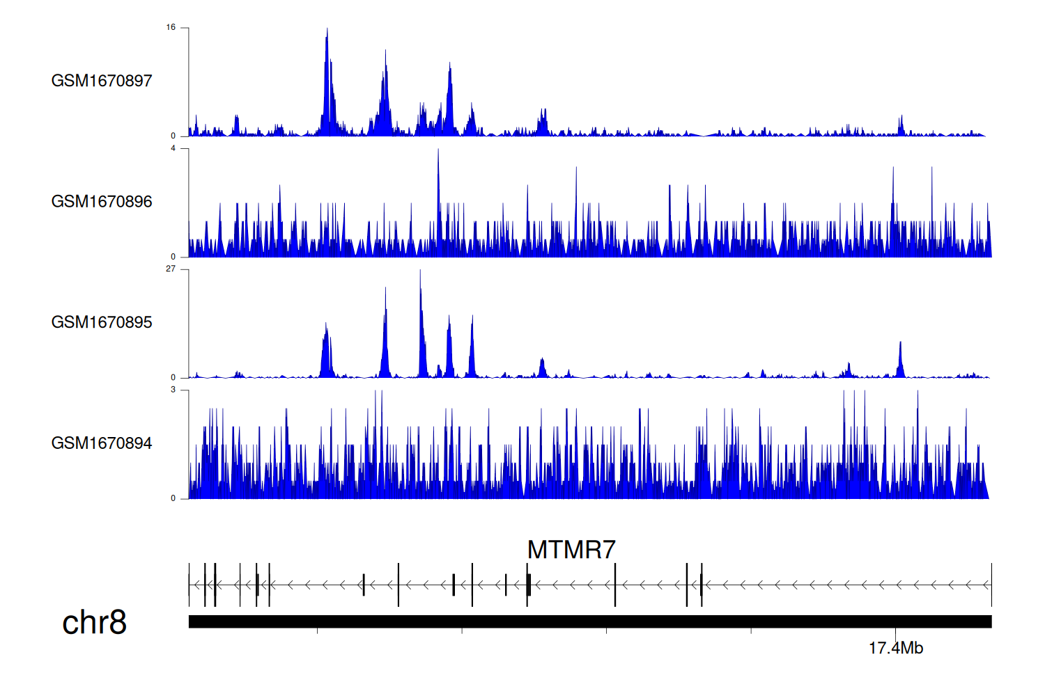 > Dataset: GSE100400 - MTMR7 peak across samples