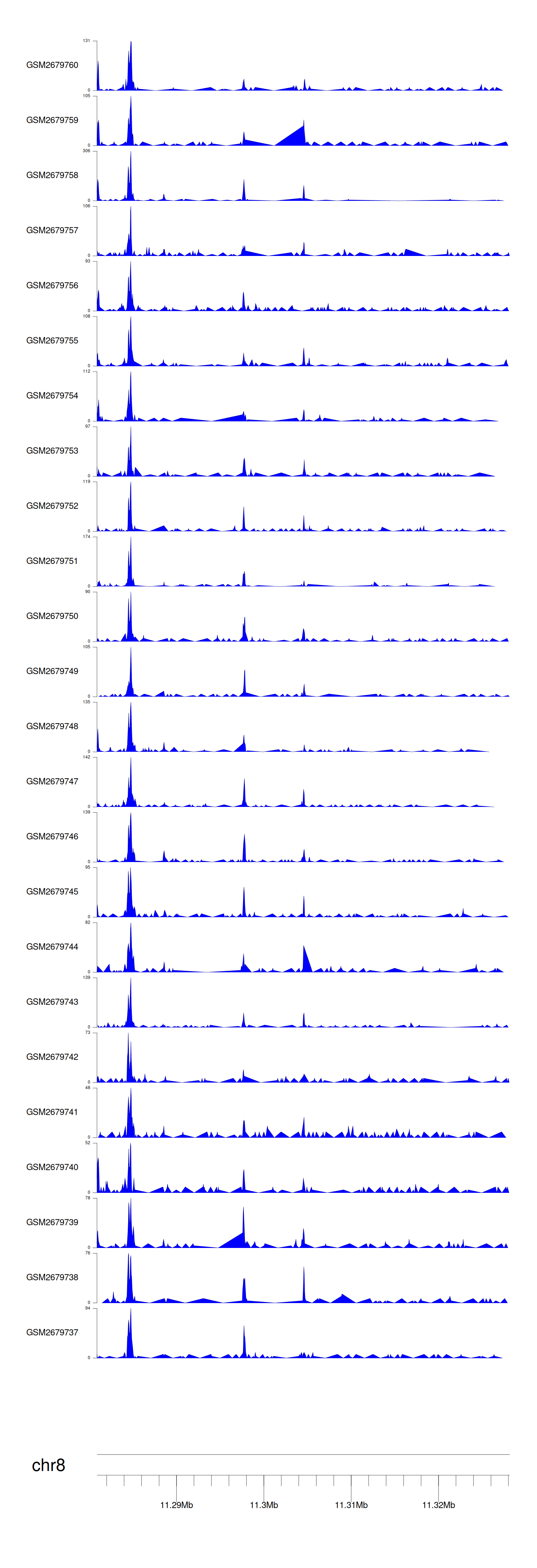 > Dataset: GSE100376 - MTMR9 peak across samples