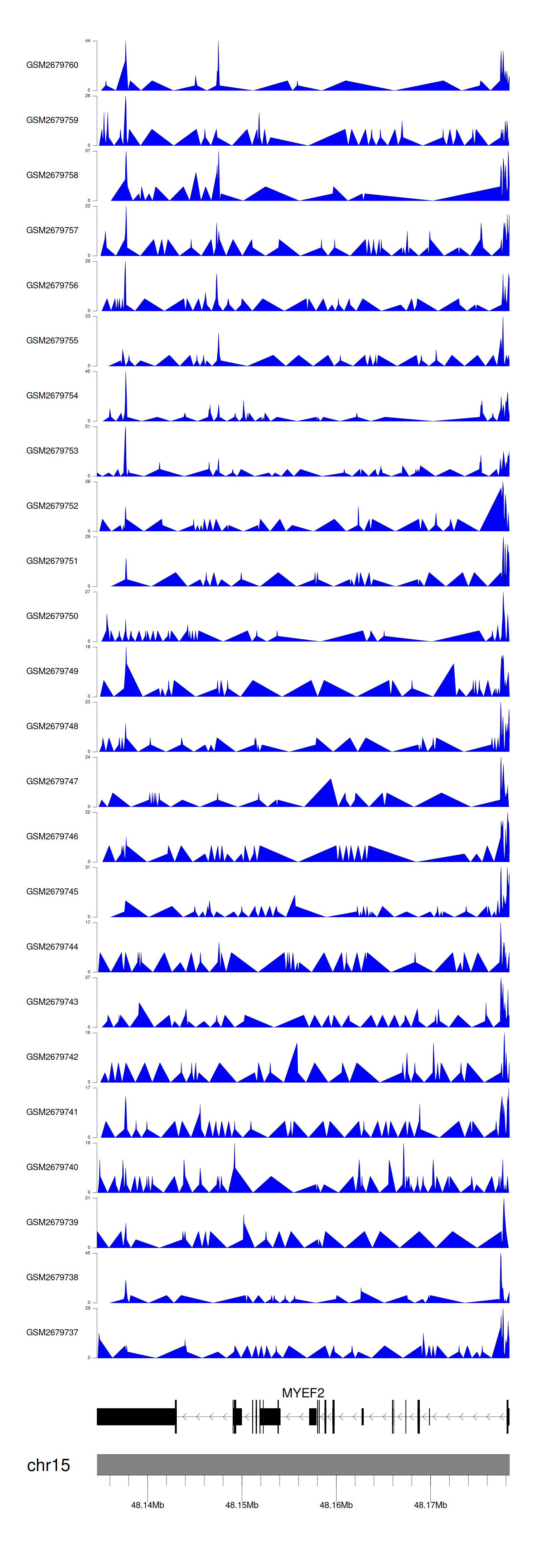 > Dataset: GSE144329 - MYEF2 peak across samples
