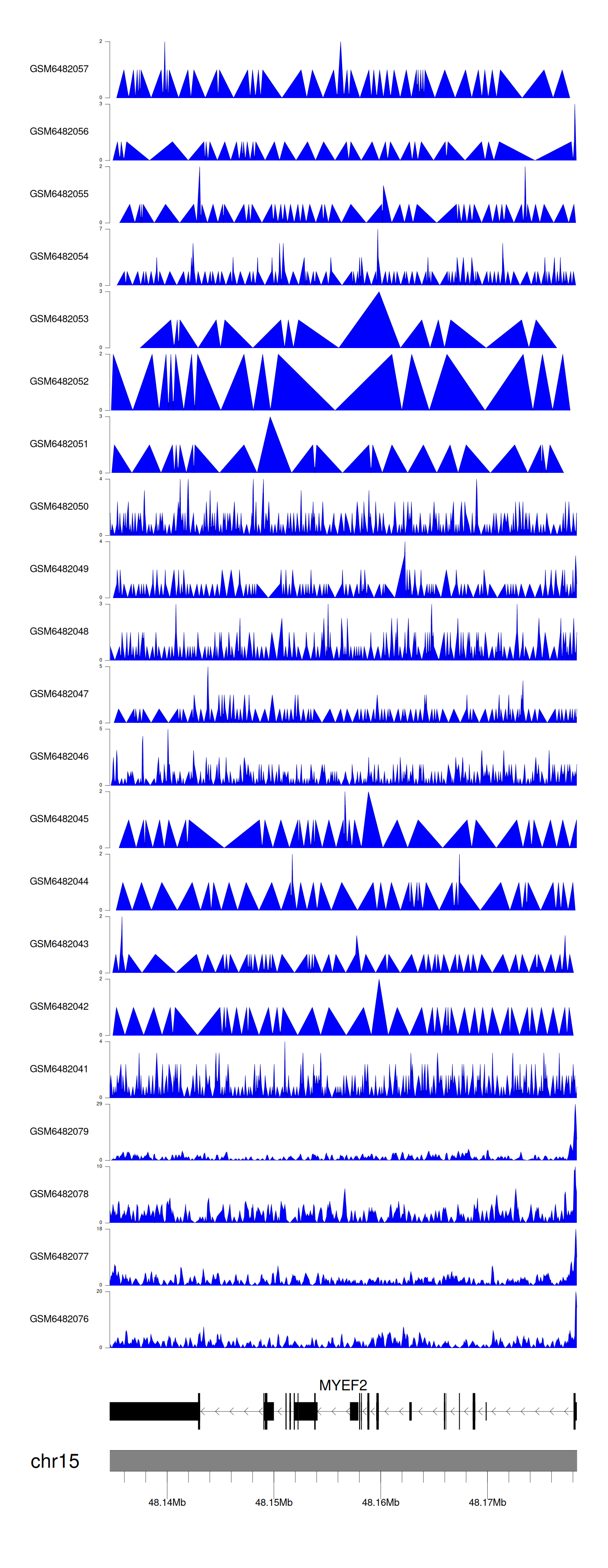 > Dataset: GSE165703 - MYEF2 peak across samples