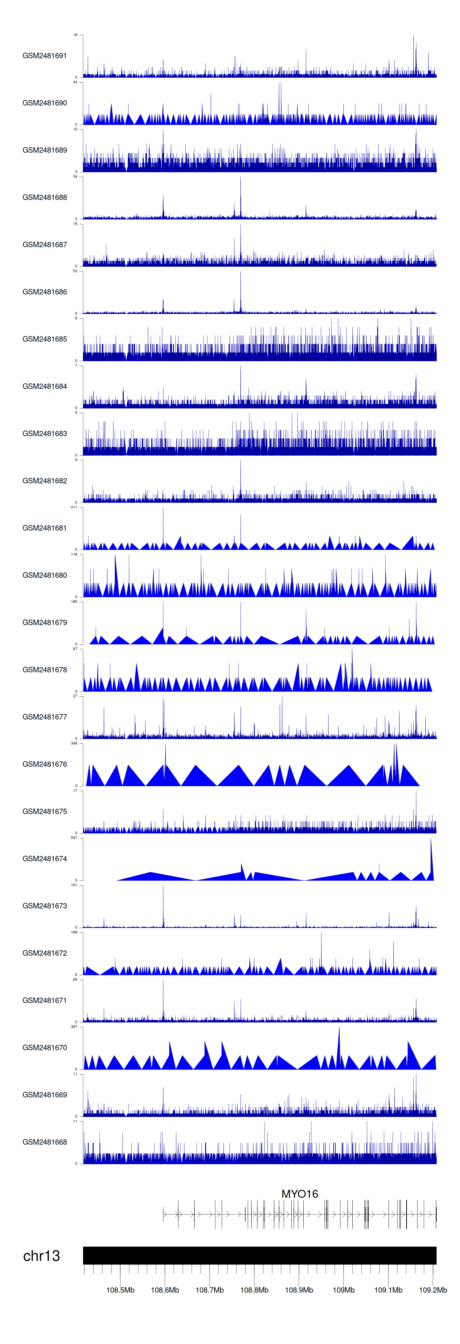 Target gene [MYO16] related to Omics data