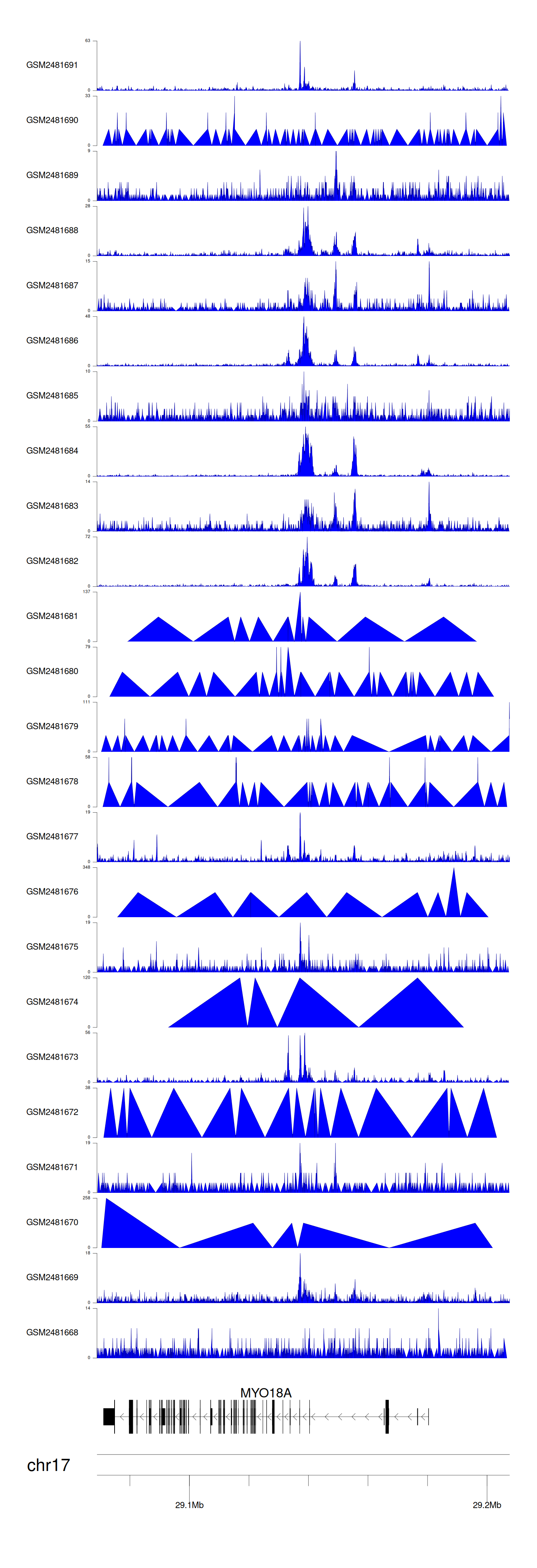 Target gene [MYO18A] related to VISs