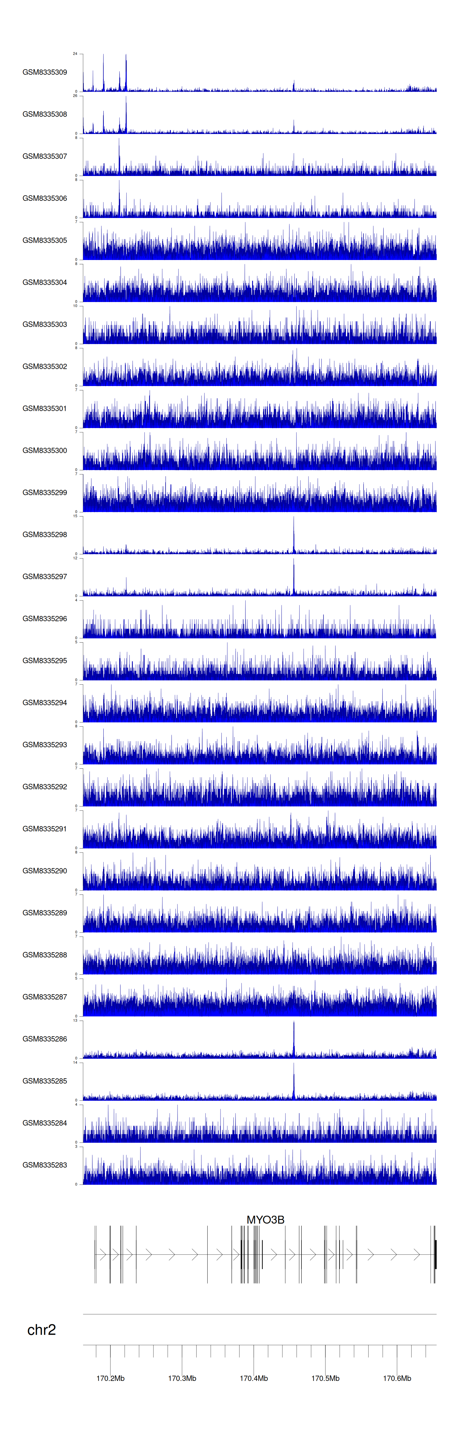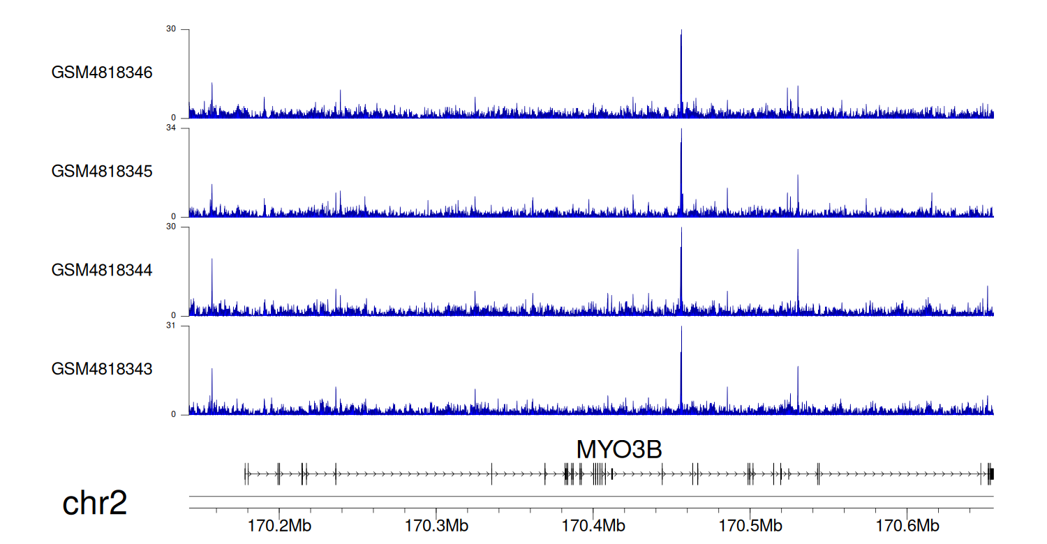 > Dataset: GSE270130 - MYO3B peak across samples