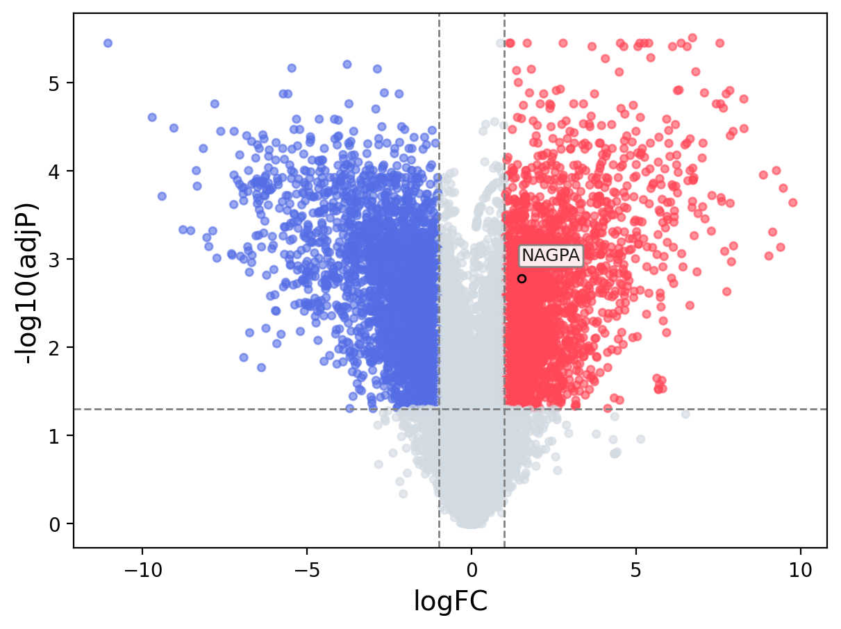 When the query gene is differentially changed in the dataset, a volcano/bar plot will be displayed.