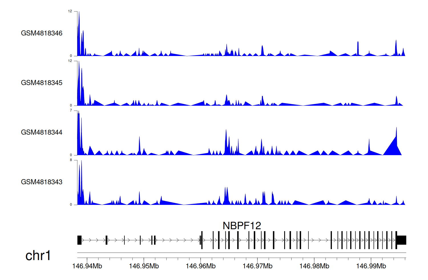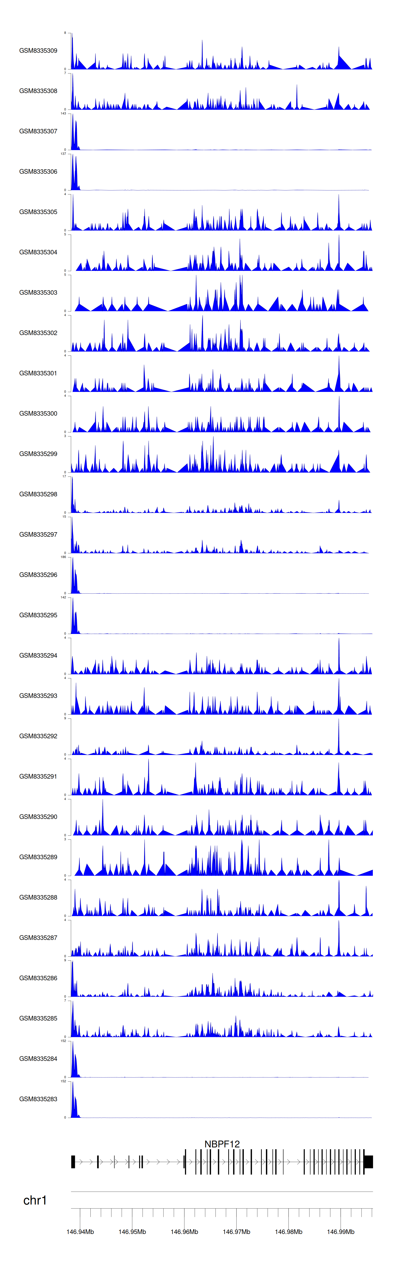 > Dataset: GSE270130 - NBPF12 peak across samples