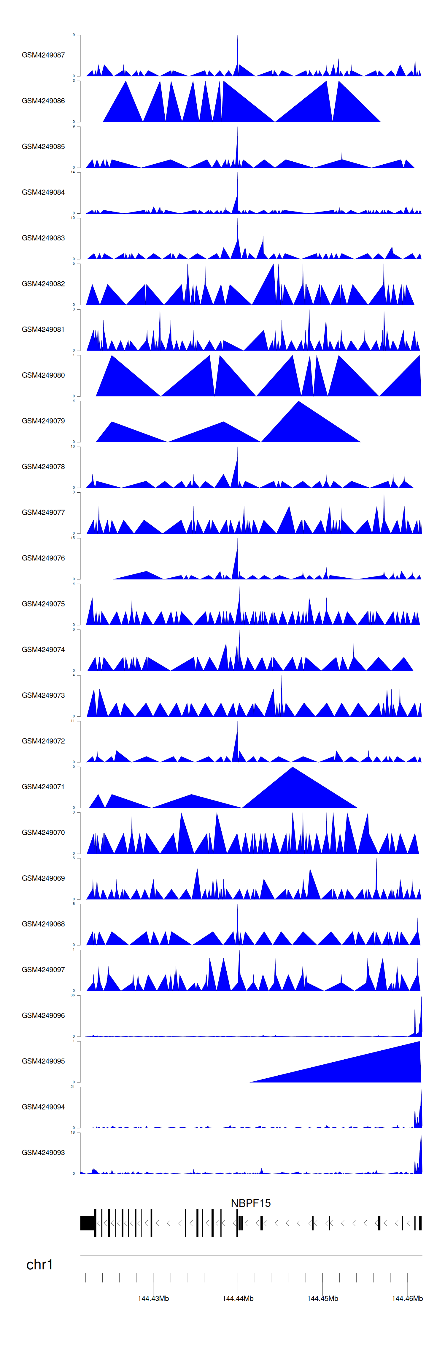 > Dataset: GSE143026 - NBPF15 peak across samples
