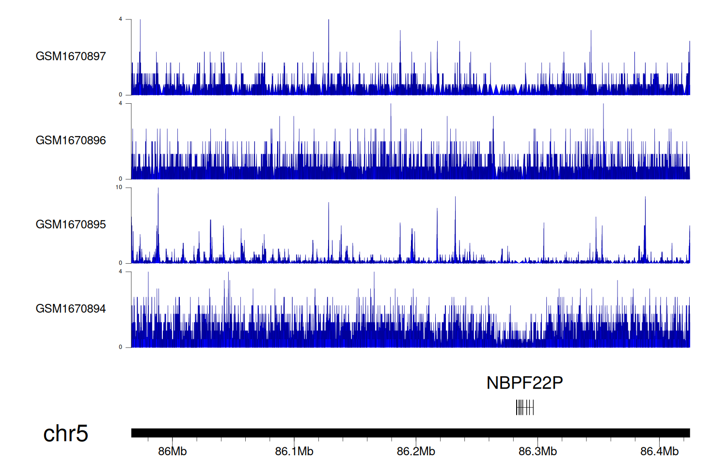 > Dataset: GSE100400 - NBPF22P peak across samples