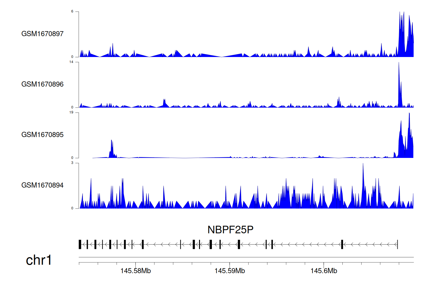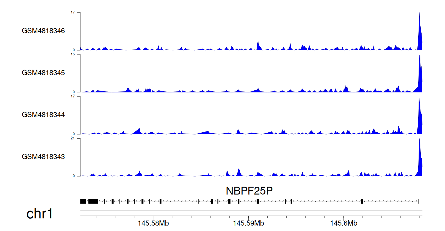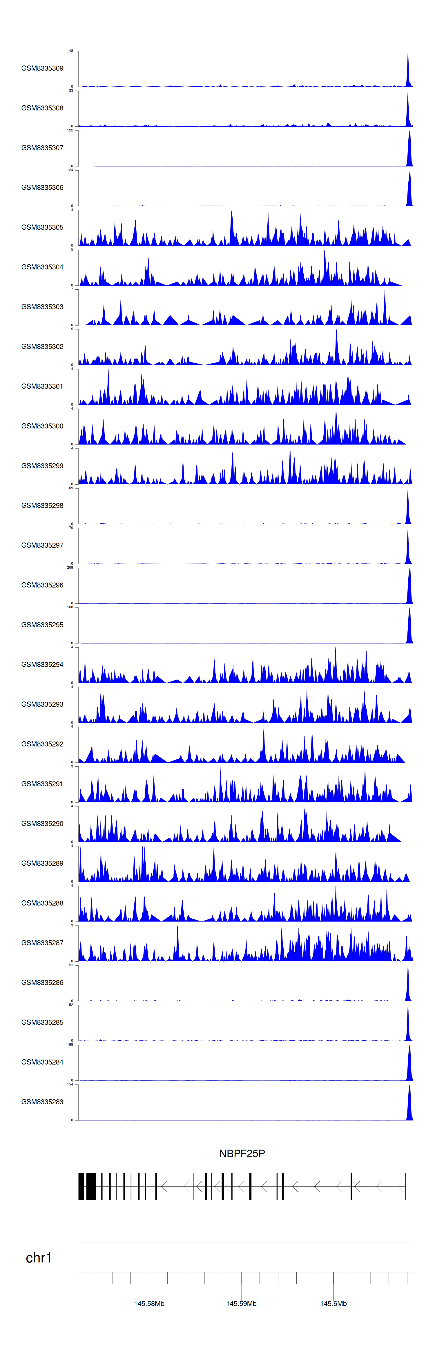 > Dataset: GSE270130 - NBPF25P peak across samples