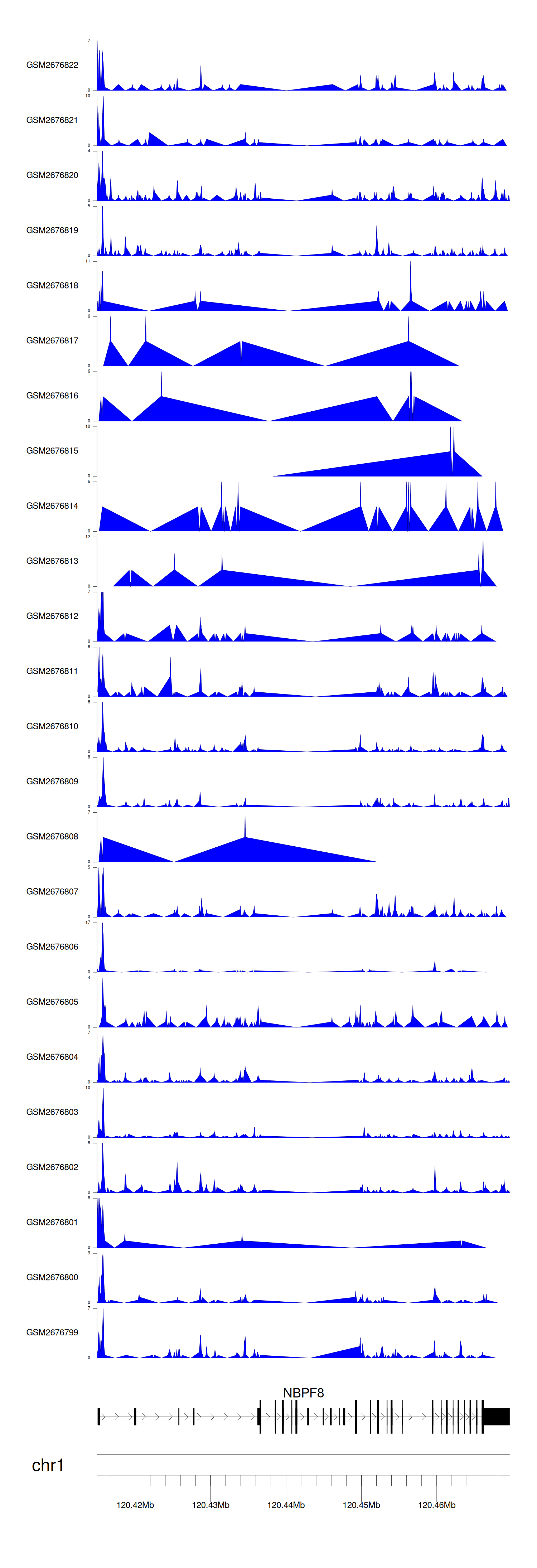 > Dataset: GSE100266 - NBPF8 peak across samples