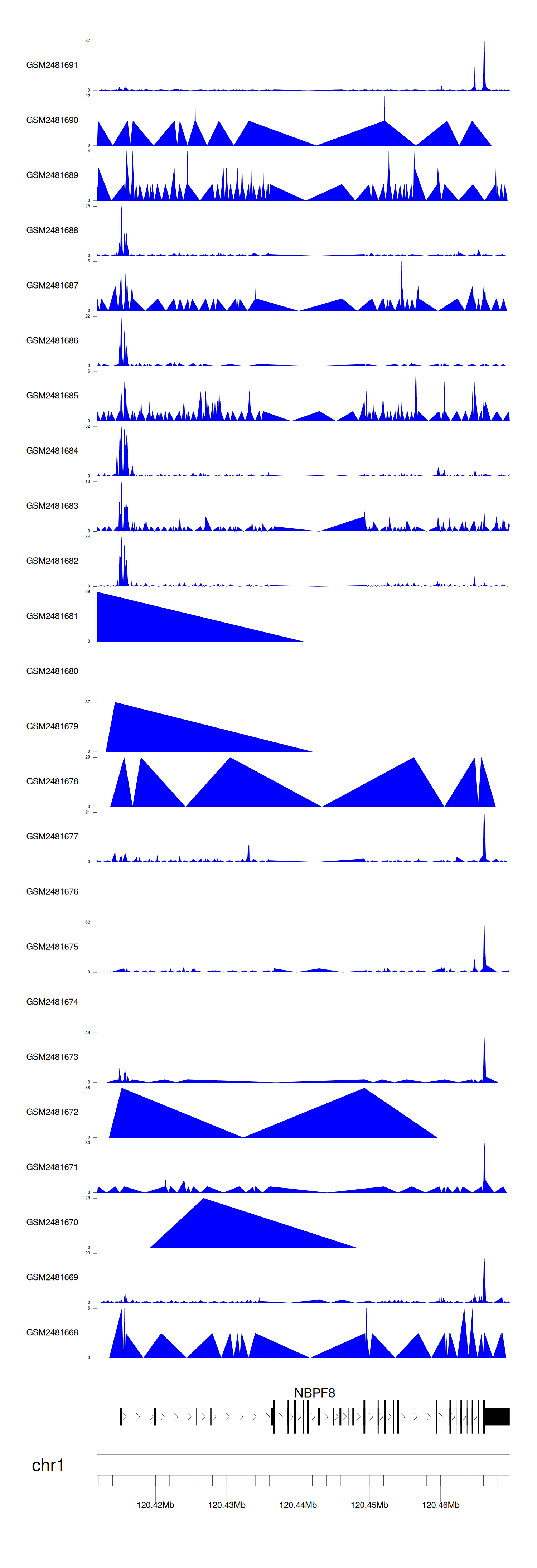 > Dataset: GSE94732 - NBPF8 peak across samples