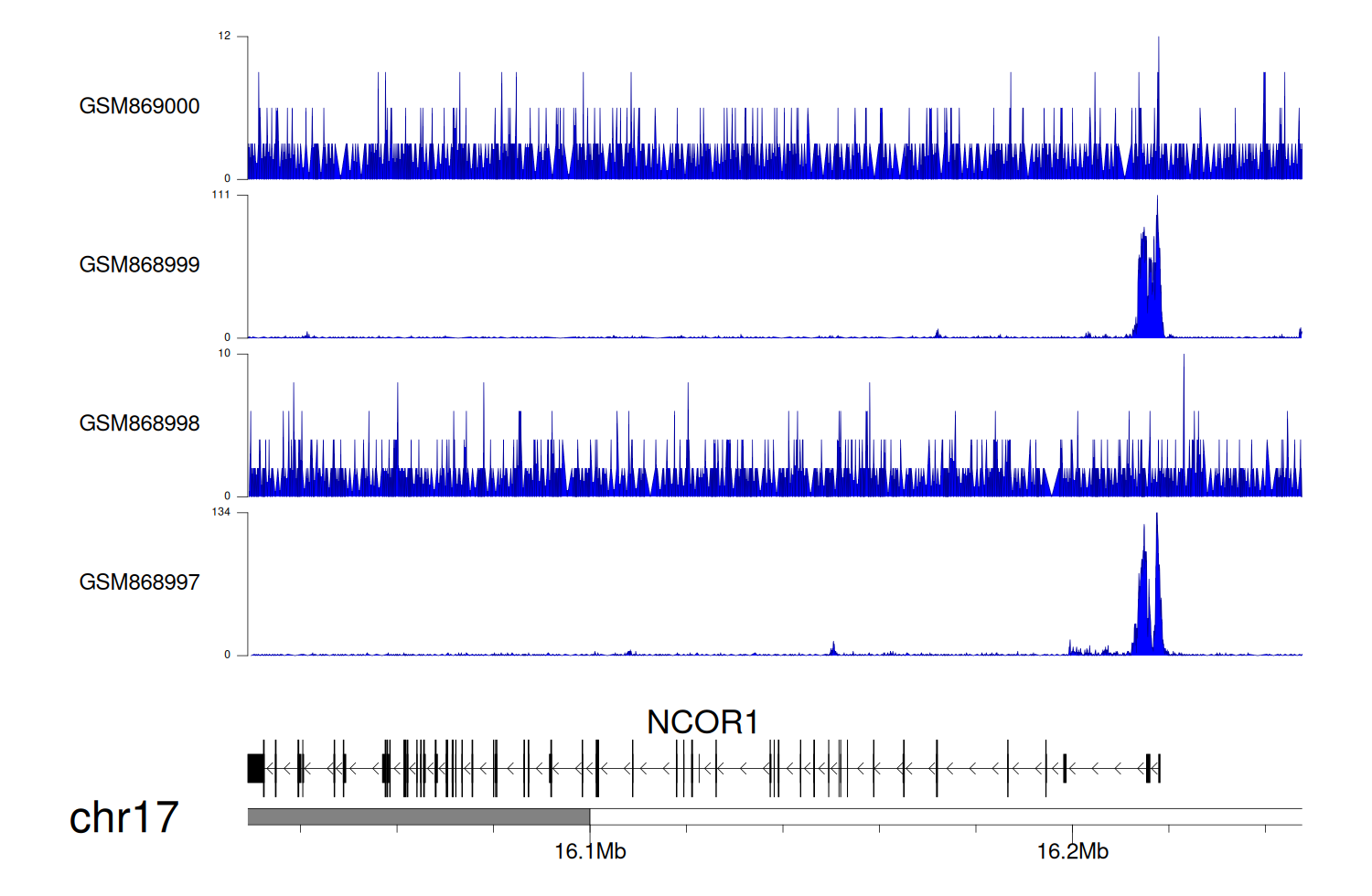 > Dataset: GSE68402 - NCOR1 peak across samples