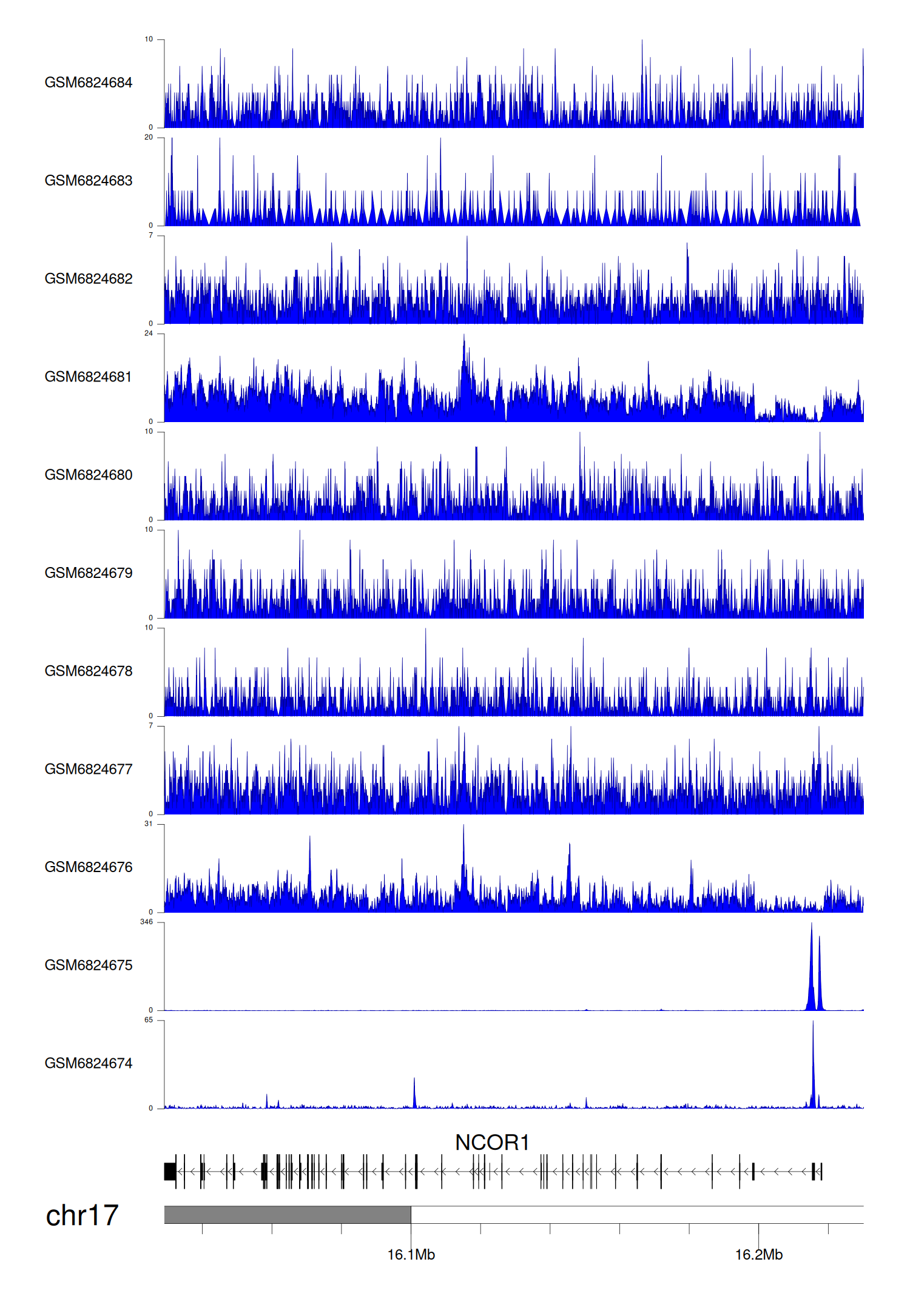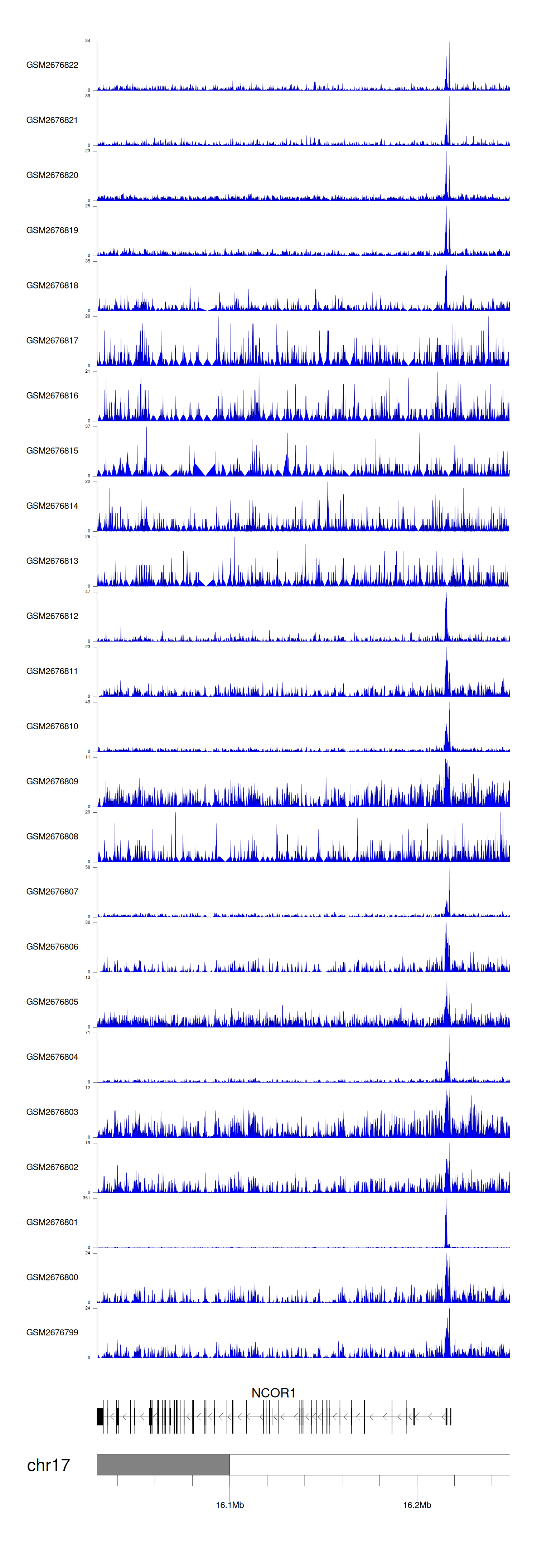 > Dataset: GSE165703 - NCOR1 peak across samples