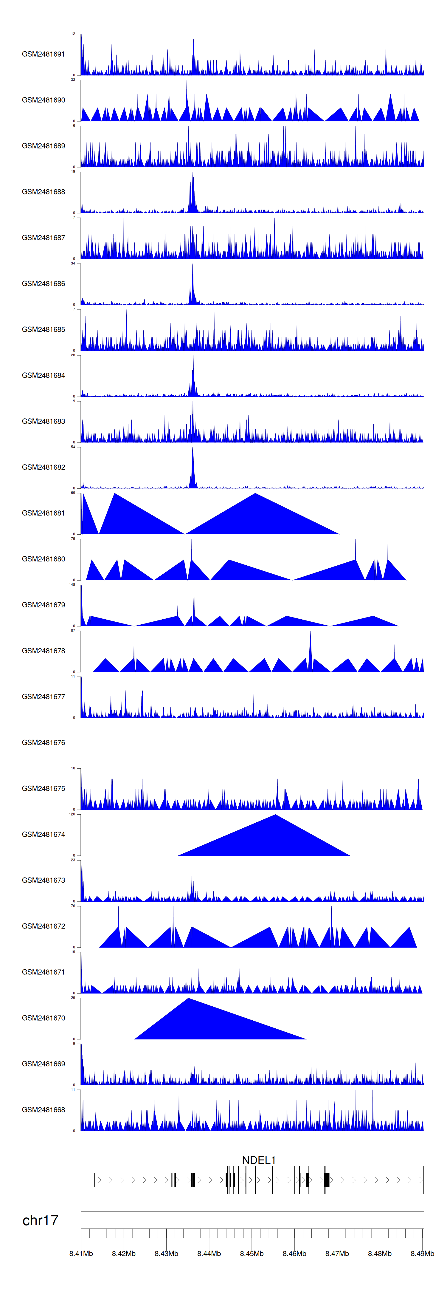 > Dataset: GSE94732 - NDEL1 peak across samples