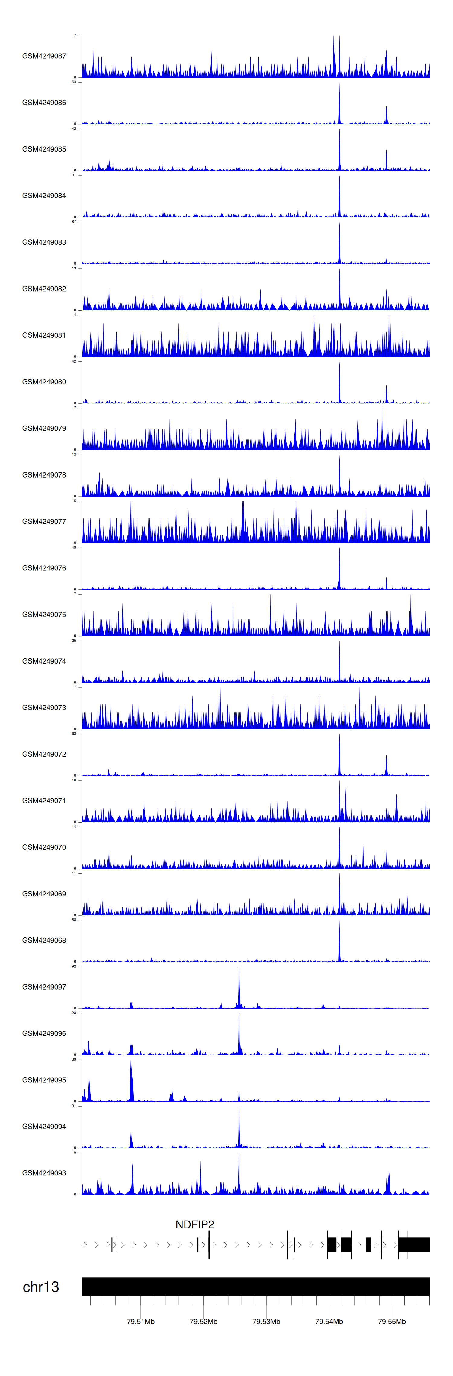 > Dataset: GSE143026 - NDFIP2 peak across samples
