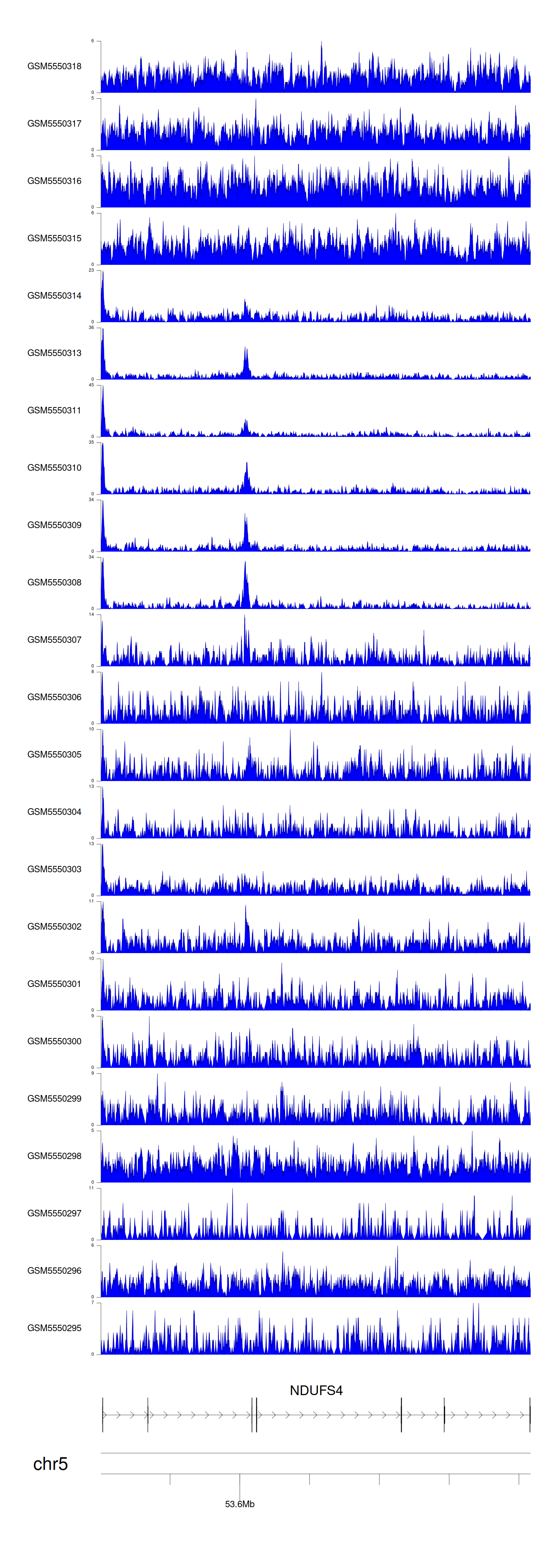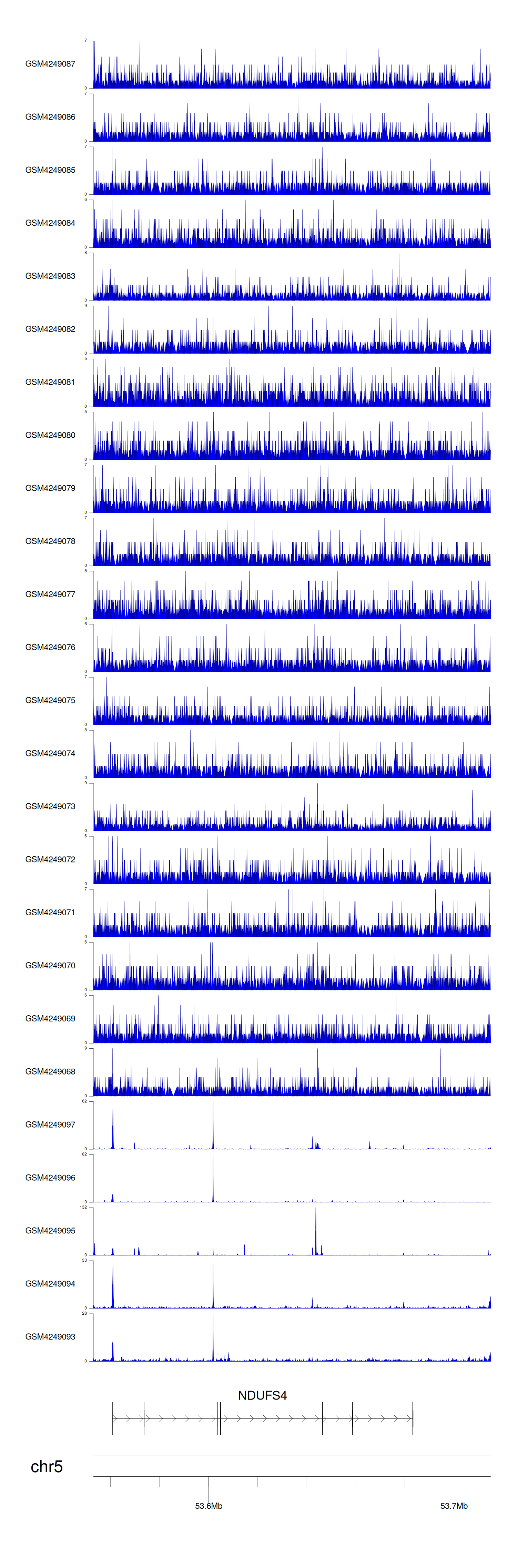 > Dataset: GSE143026 - NDUFS4 peak across samples