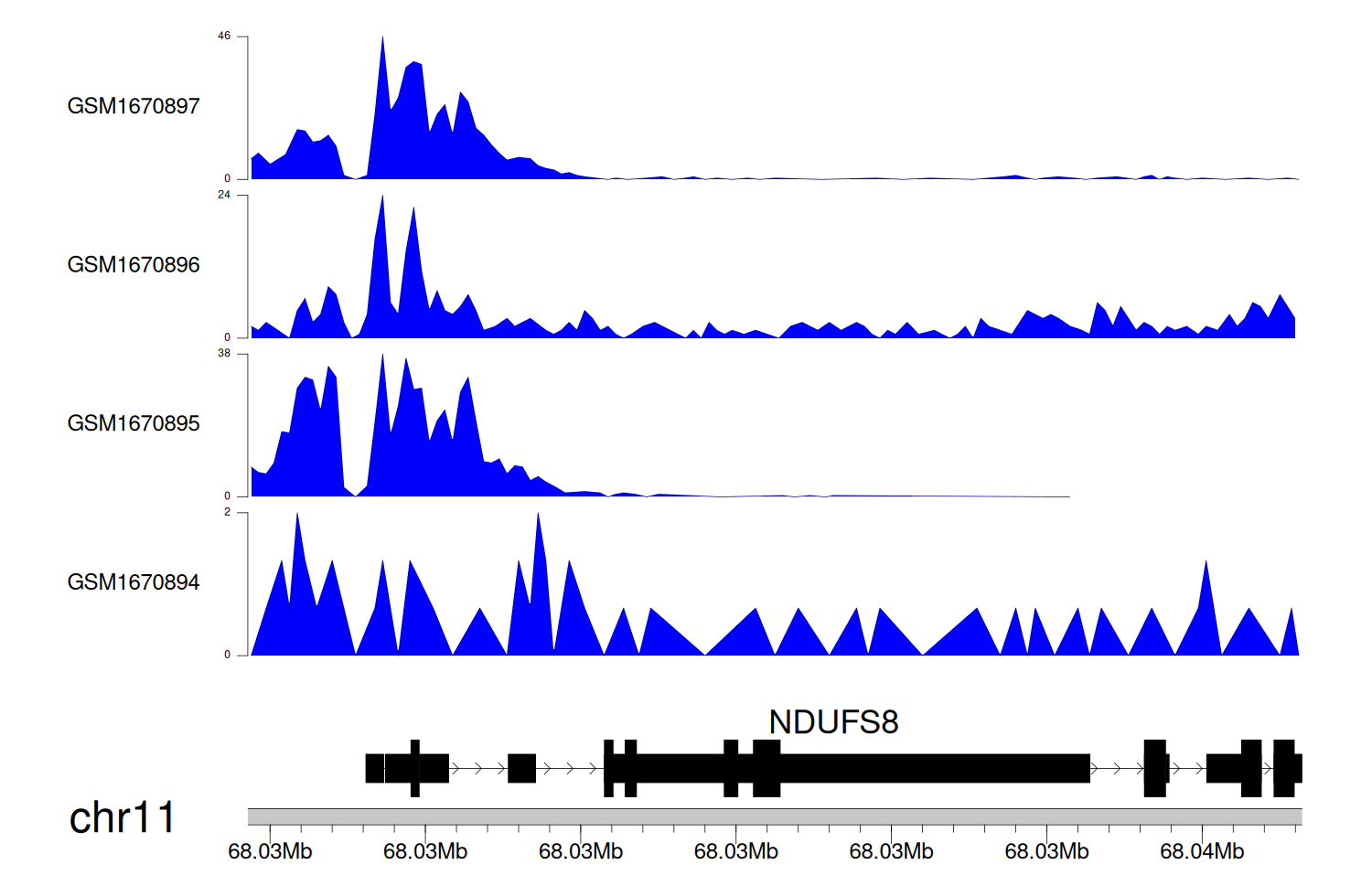> Dataset: GSE68402 - NDUFS8 peak across samples