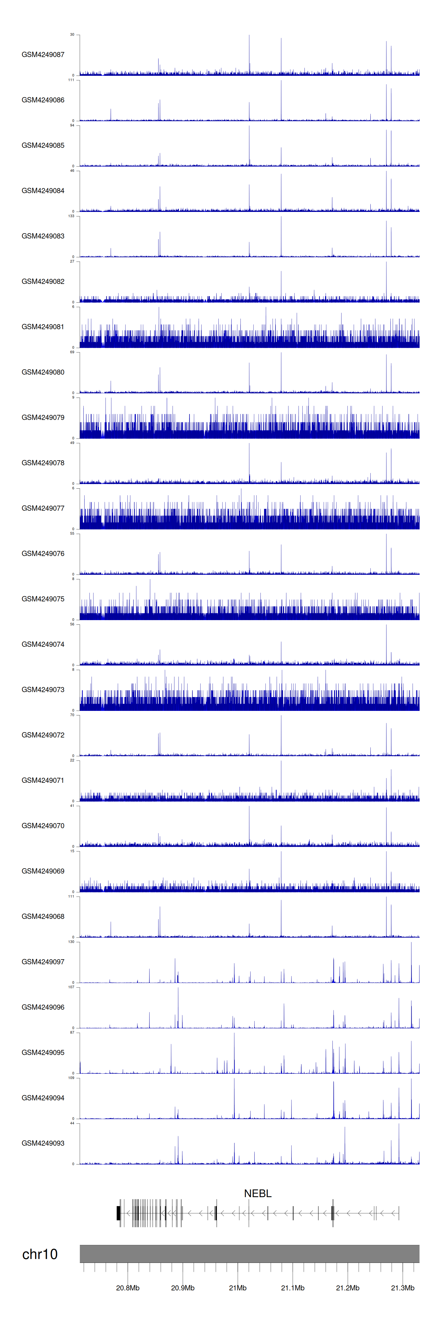 > Dataset: GSE143026 - NEBL peak across samples