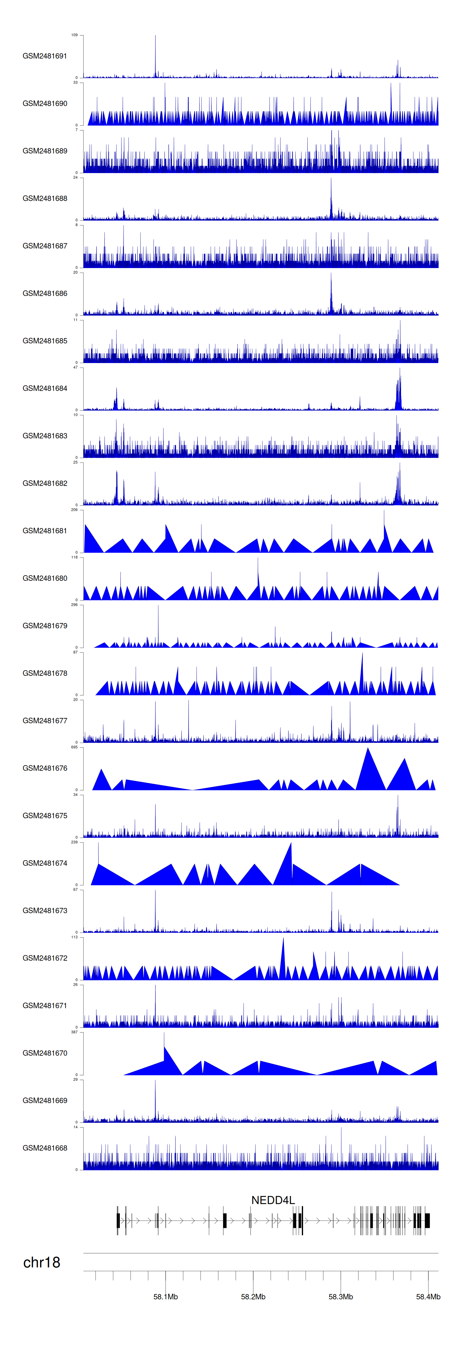 > Dataset: GSE94732 - NEDD4L peak across samples