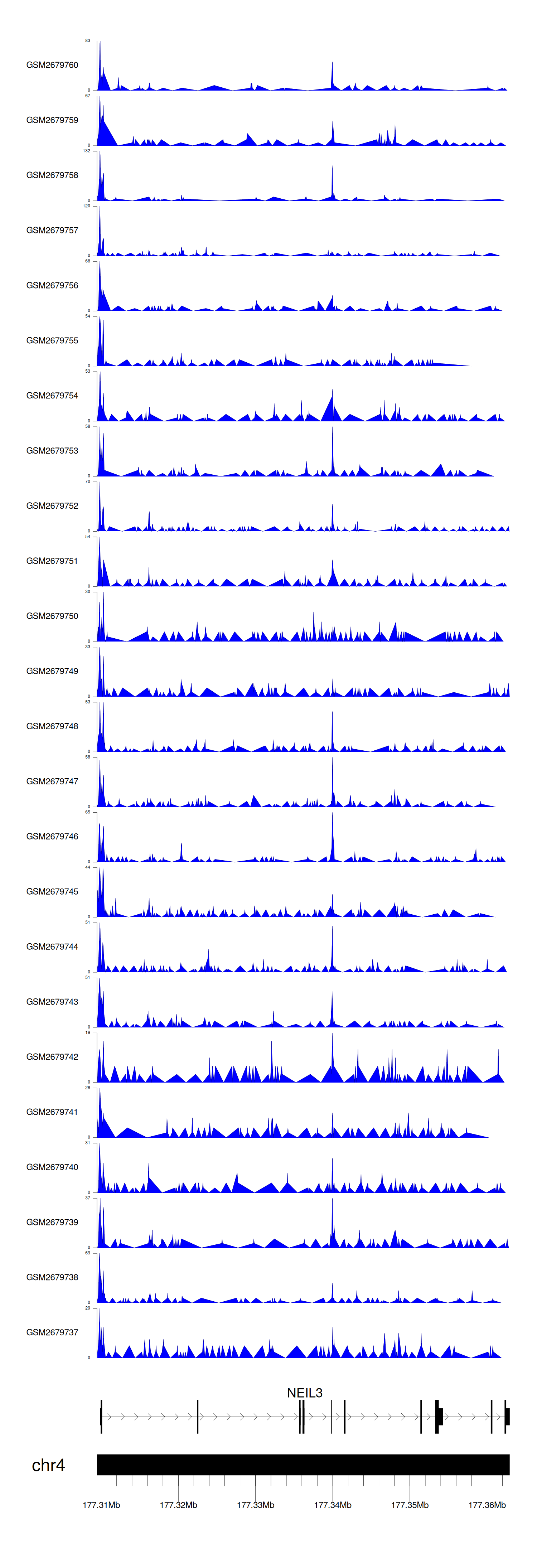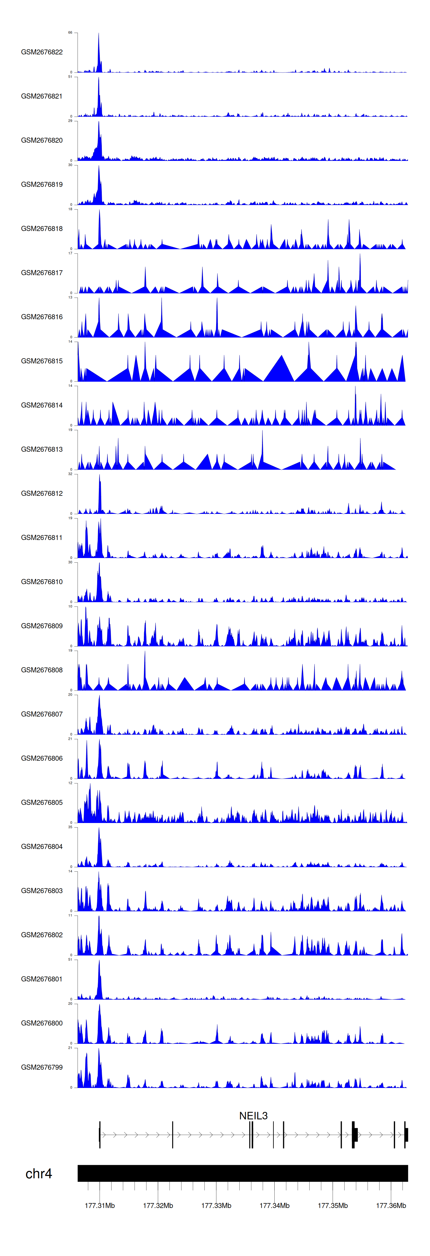 > Dataset: GSE100376 - NEIL3 peak across samples