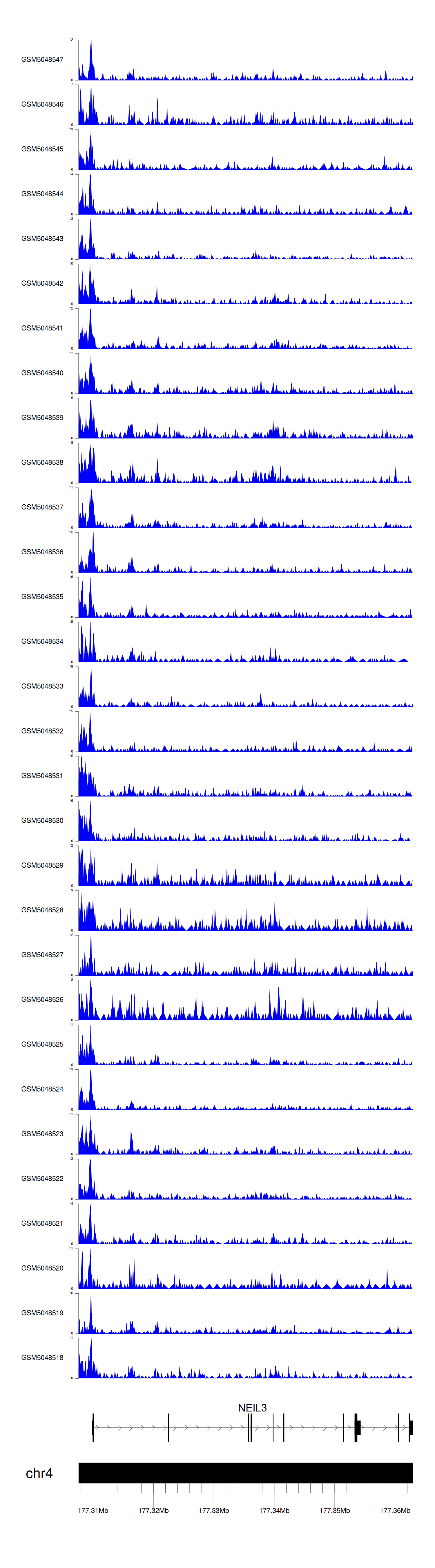> Dataset: GSE30738 - NEIL3 peak across samples