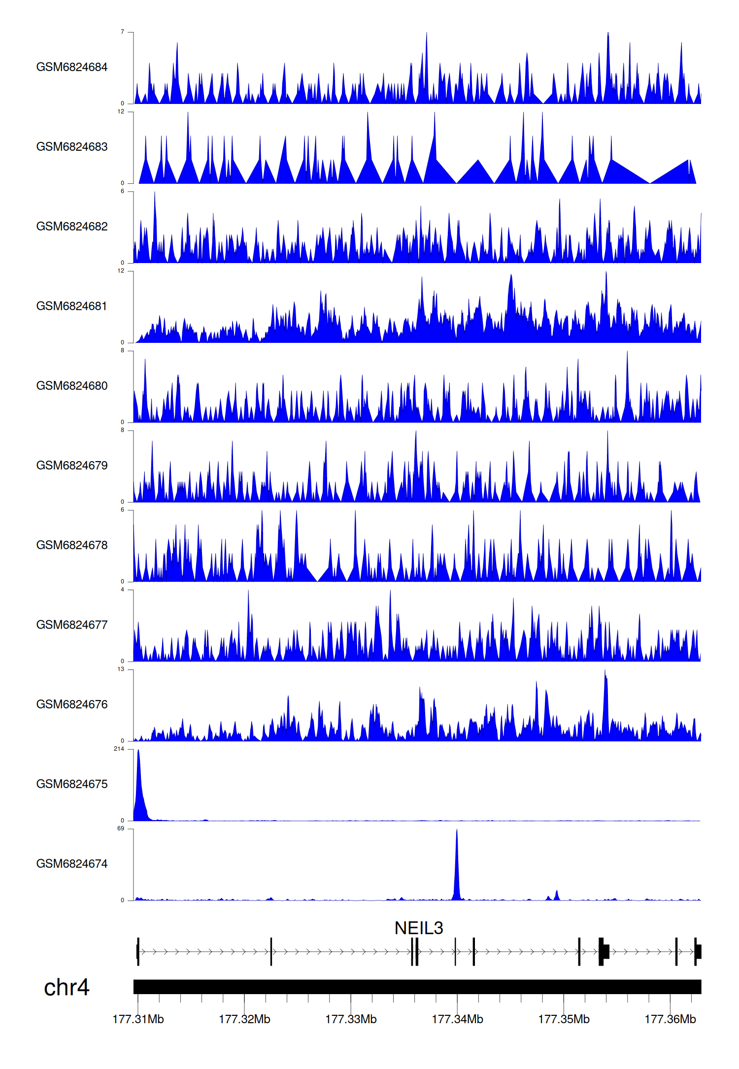 > Dataset: GSE144329 - NEIL3 peak across samples