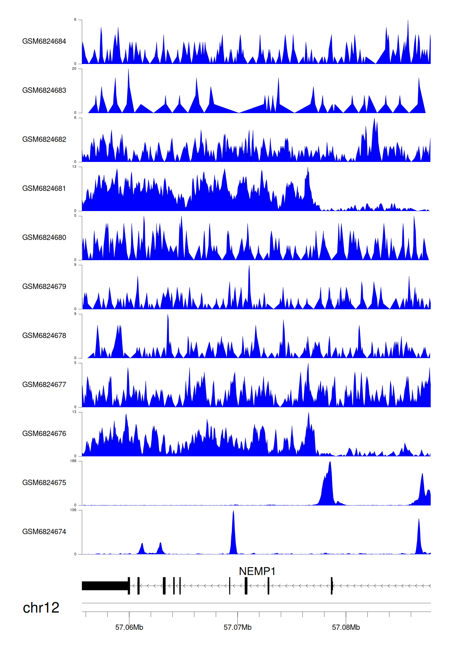 > Dataset: GSE144329 - NEMP1 peak across samples