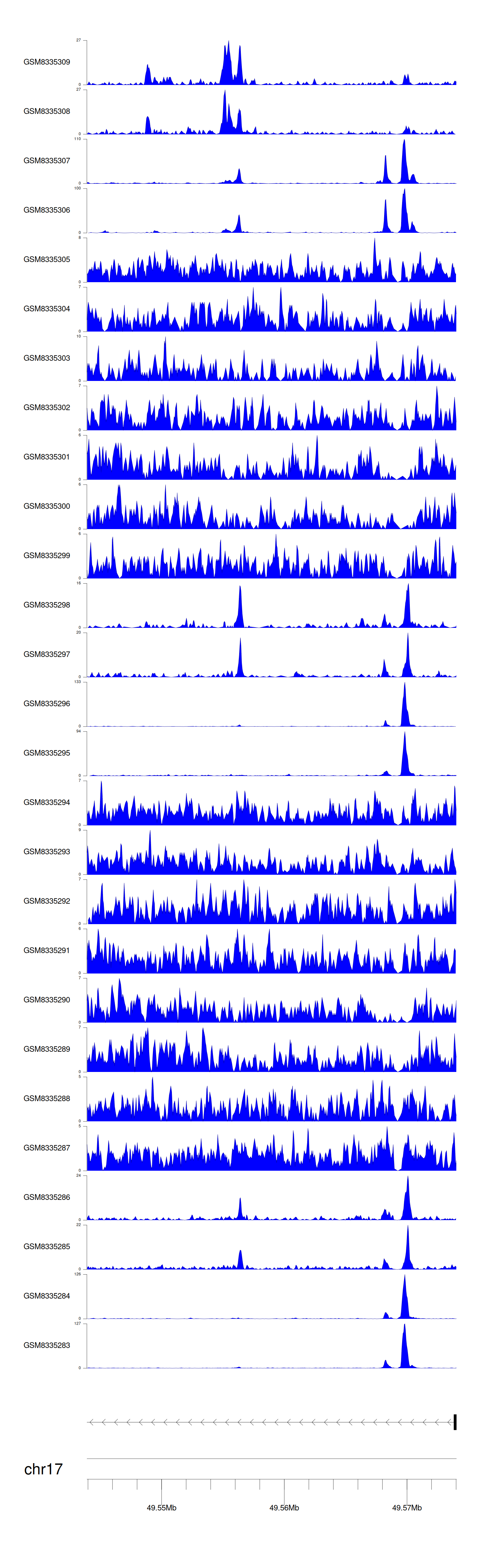 > Dataset: GSE131257 - NGFR-AS1 peak across samples