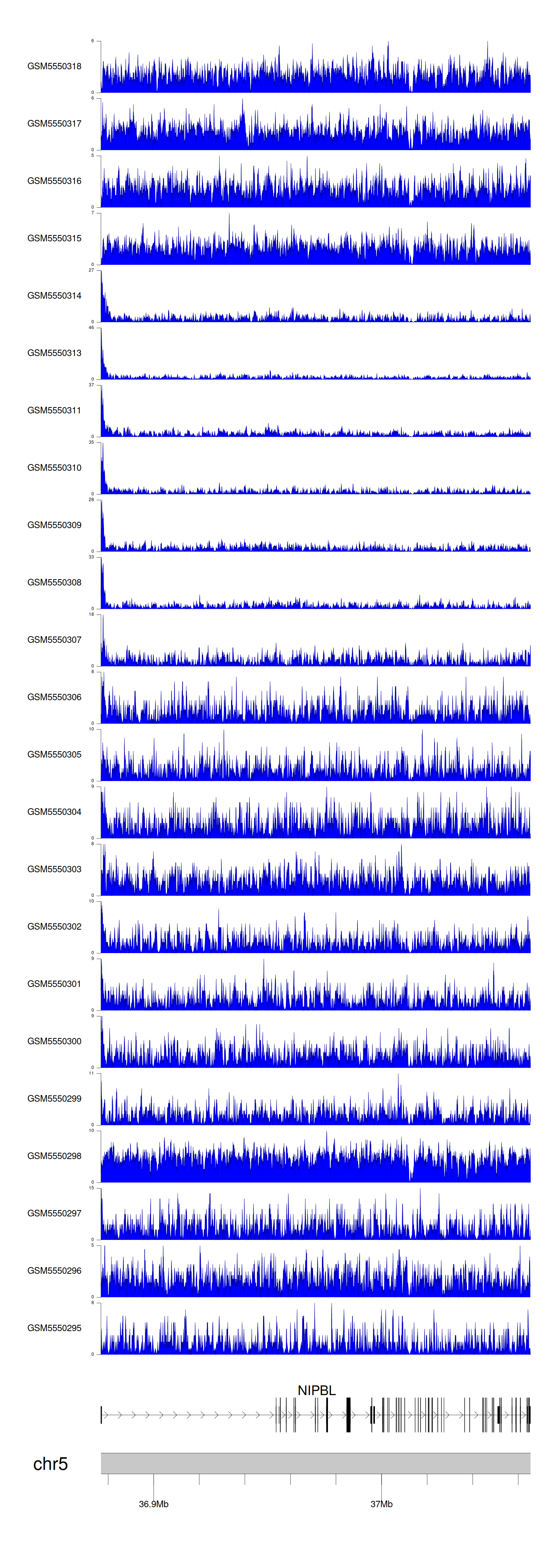 Summary This gene encodes the homolog of the Drosophila melanogaster Nipped-B gene product and fungal Scc2-type sister chromatid cohesion proteins. The Drosophila protein facilitates enhancer-promoter communication of remote enhancers and plays a role in developmental regulation. It is also homologous to a family of chromosomal adherins with broad roles in sister chromatid cohesion, chromosome condensation, and DNA repair. The human protein has a bipartite nuclear targeting sequence and a putative HEAT repeat. Condensins, cohesins and other complexes with chromosome-related functions also contain HEAT repeats. Mutations in this gene result in Cornelia de Lange syndrome, a disorder characterized by dysmorphic facial features, growth delay, limb reduction defects, and cognitive disability. Two transcript variants encoding different isoforms have been found for this gene. [provided by RefSeq, Jul 2008]