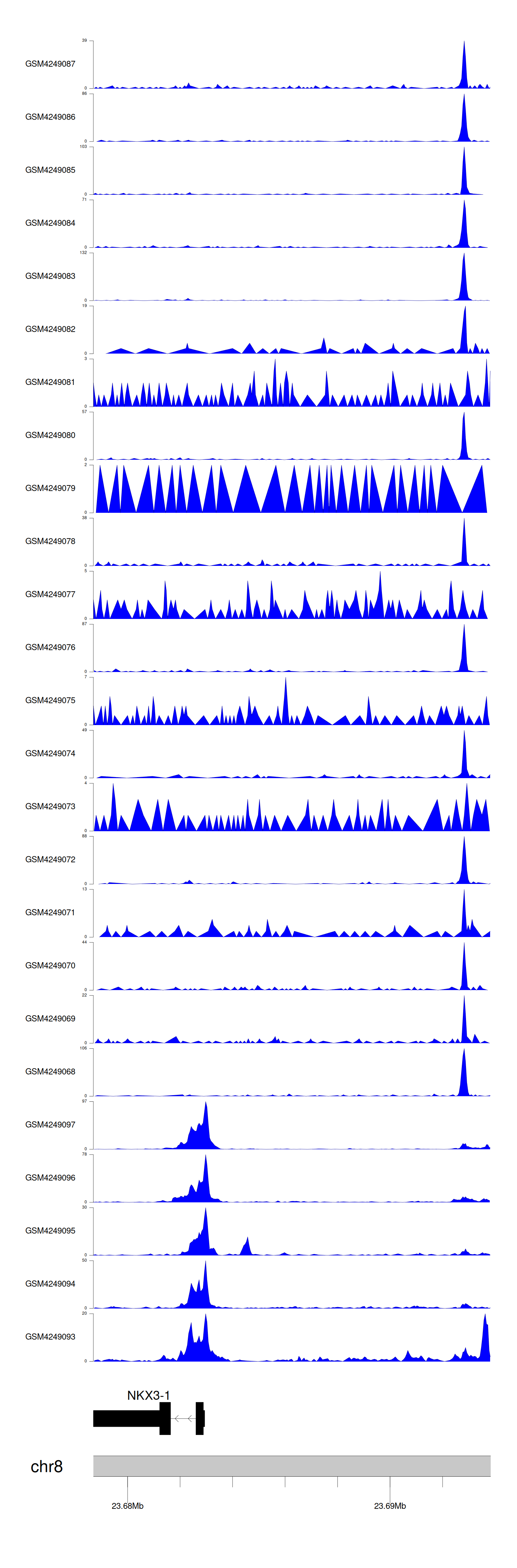 > Dataset: GSE143026 - NKX3-1 peak across samples