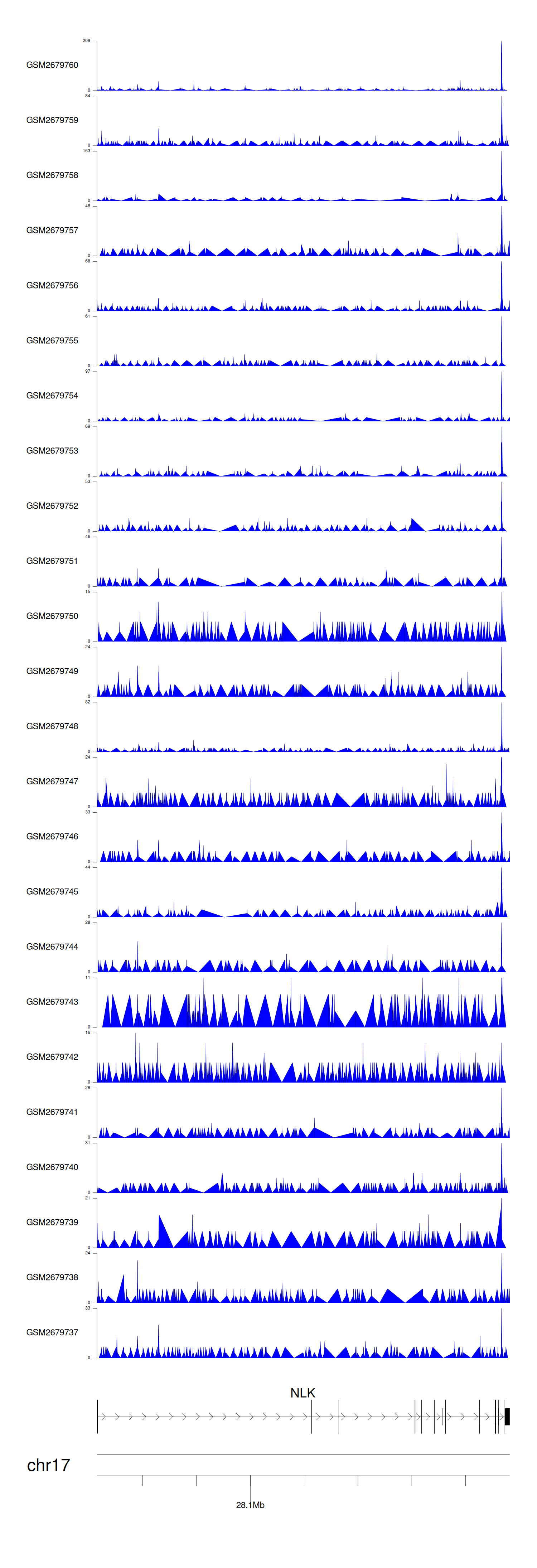 > Dataset: GSE100376 - NLK peak across samples