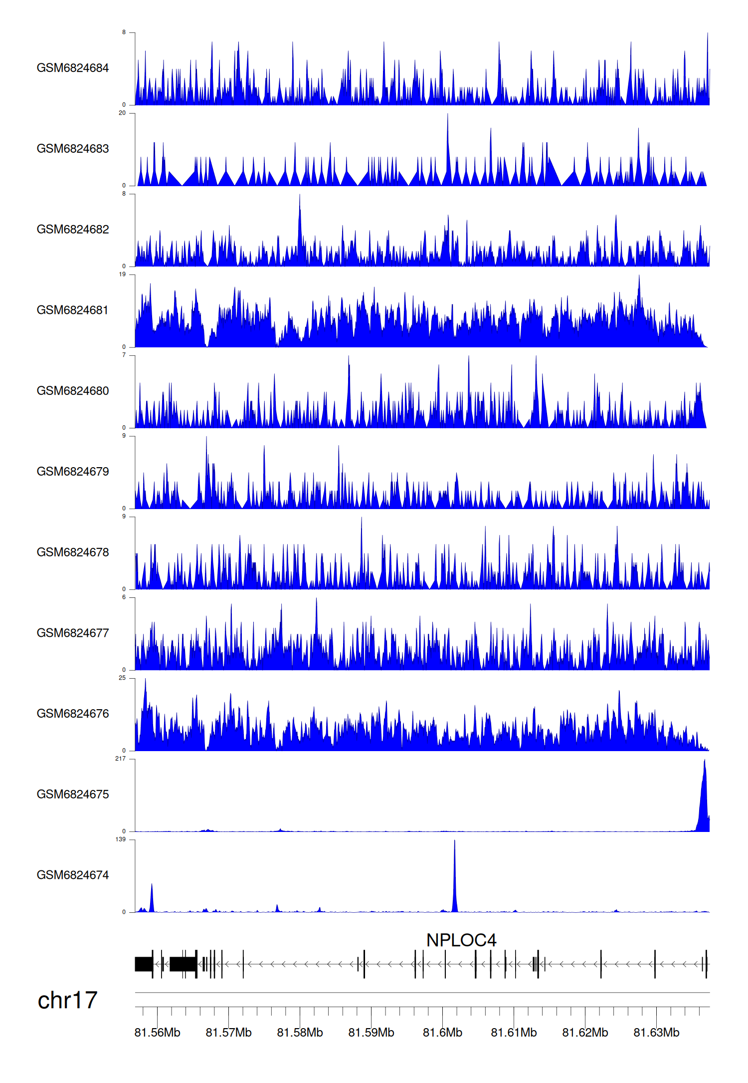 > Dataset: GSE165703 - NPLOC4 peak across samples