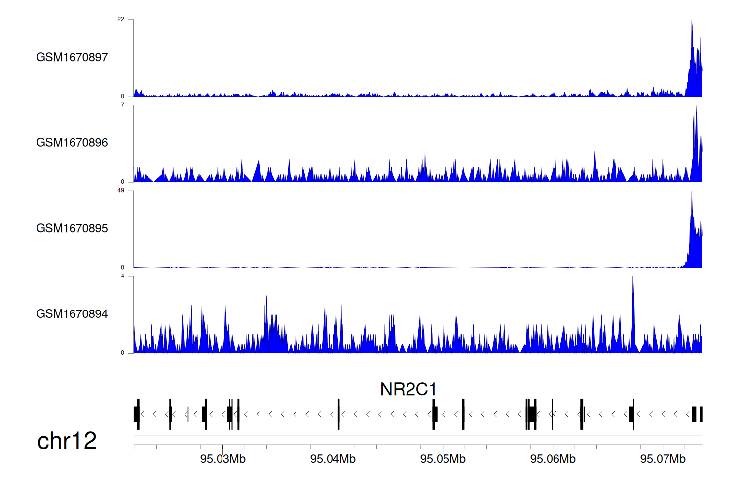 > Dataset: GSE68402 - NR2C1 peak across samples