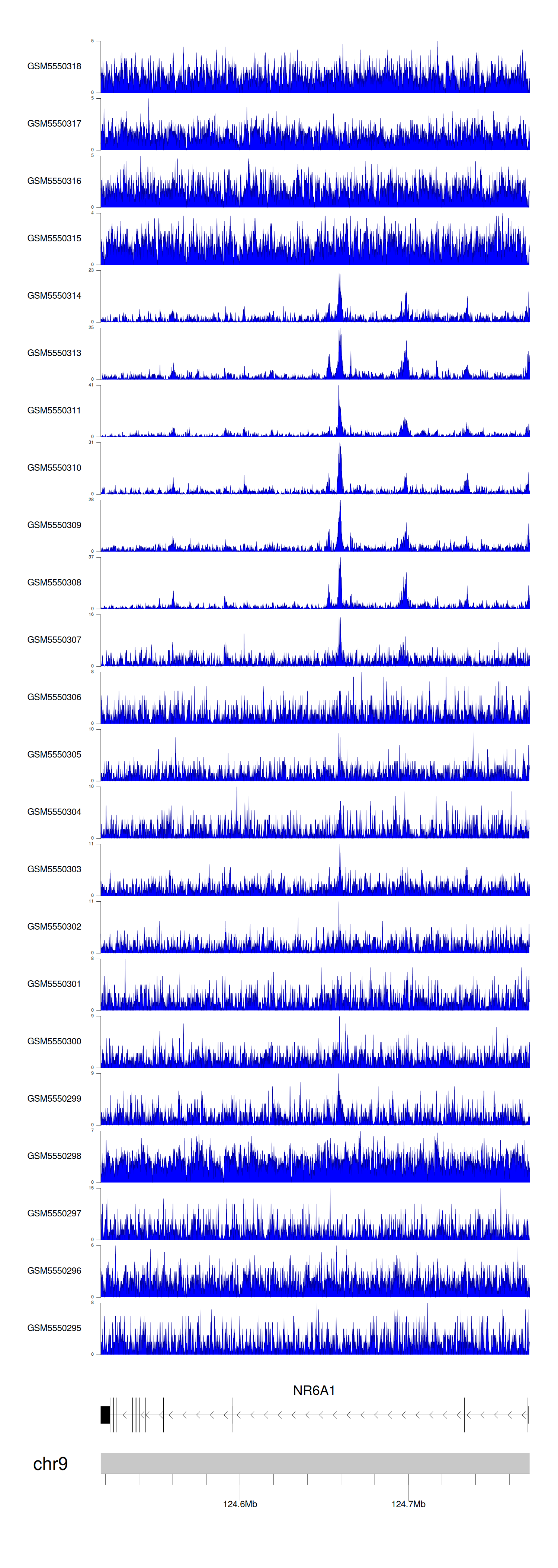 > Dataset: GSE143026 - NR6A1 peak across samples