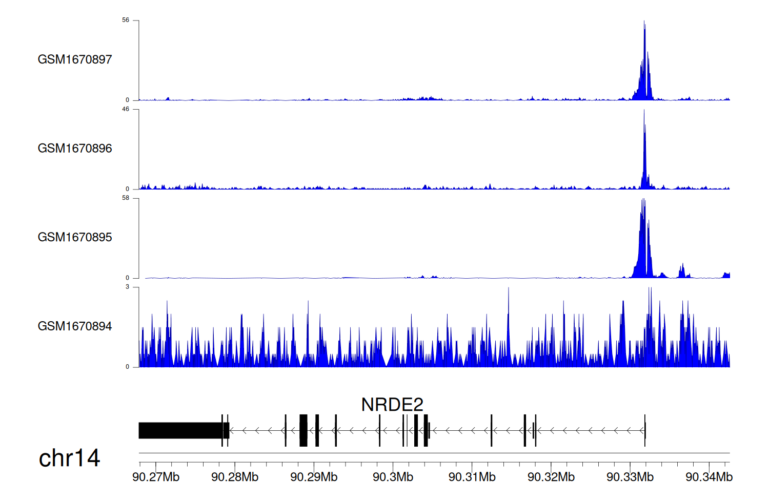 > Dataset: GSE68402 - NRDE2 peak across samples