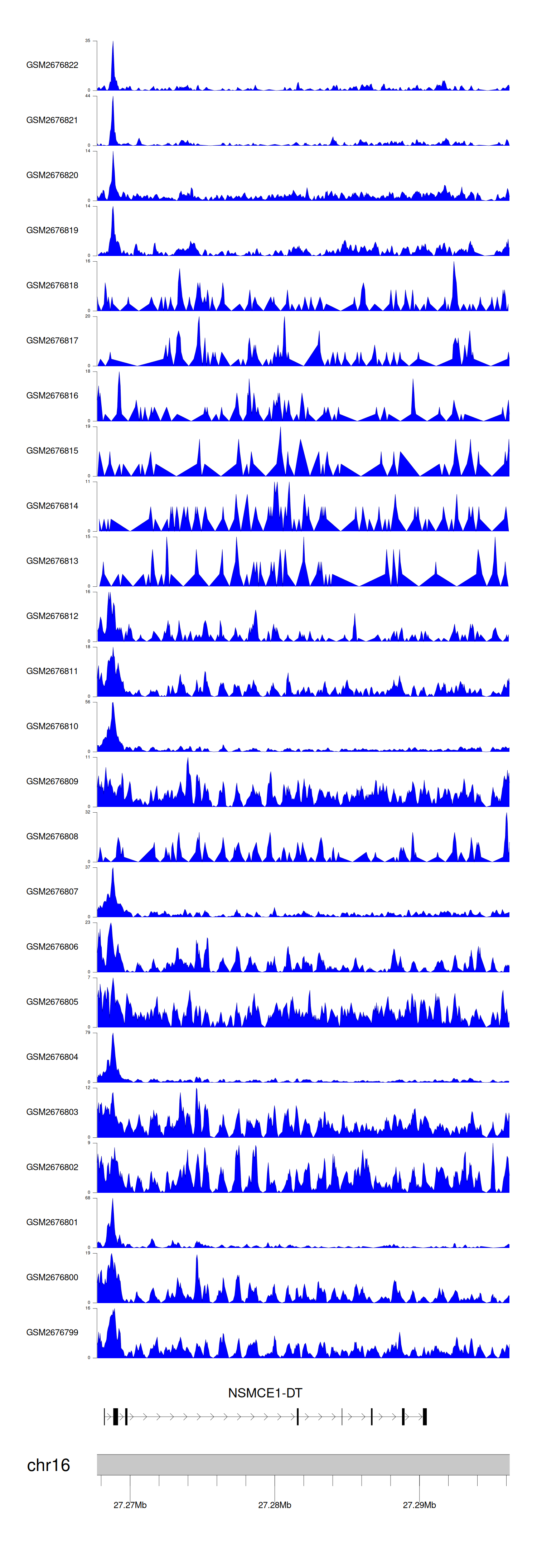 > Dataset: GSE100376 - NSMCE1-DT peak across samples