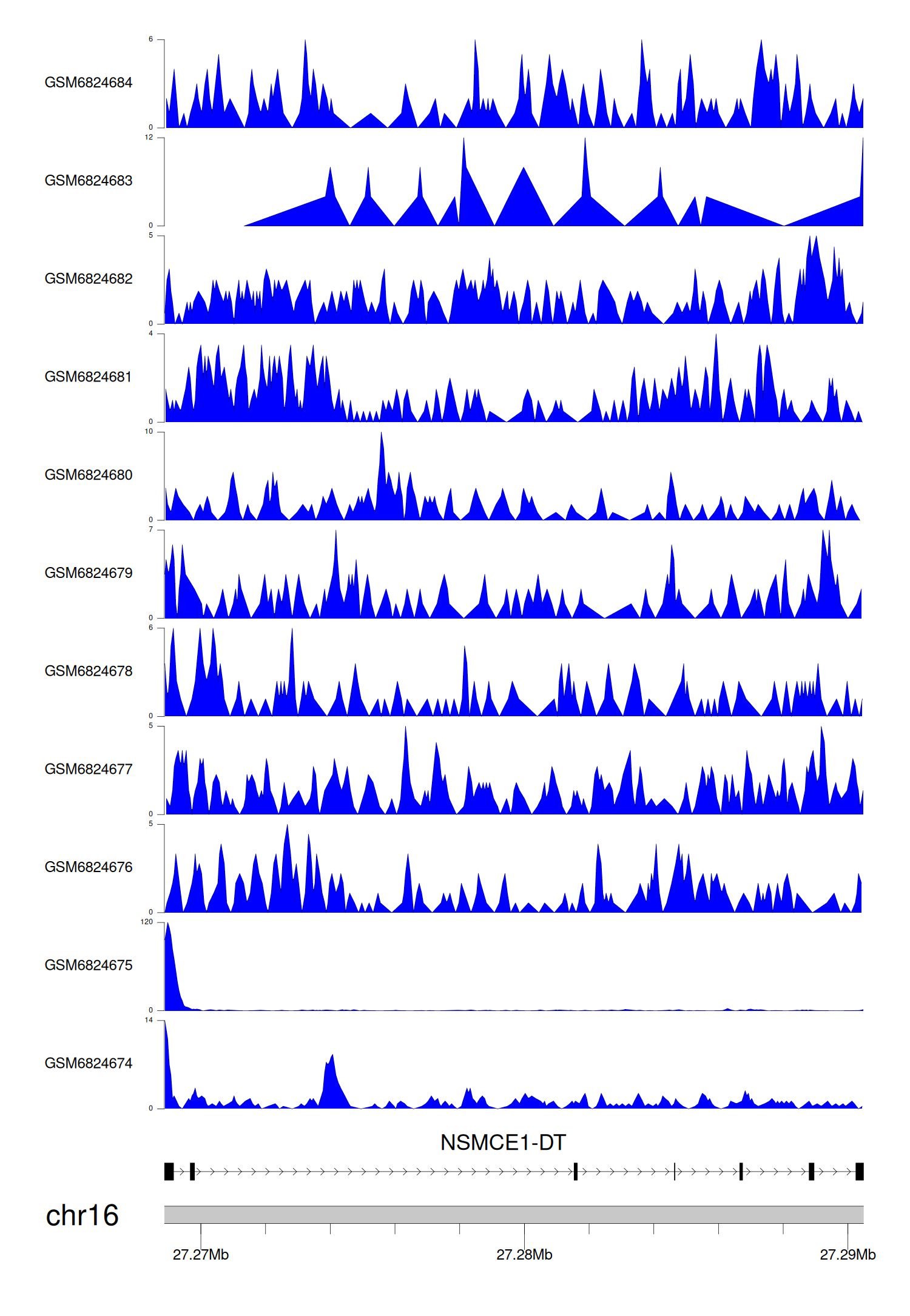 > Dataset: GSE144329 - NSMCE1-DT peak across samples