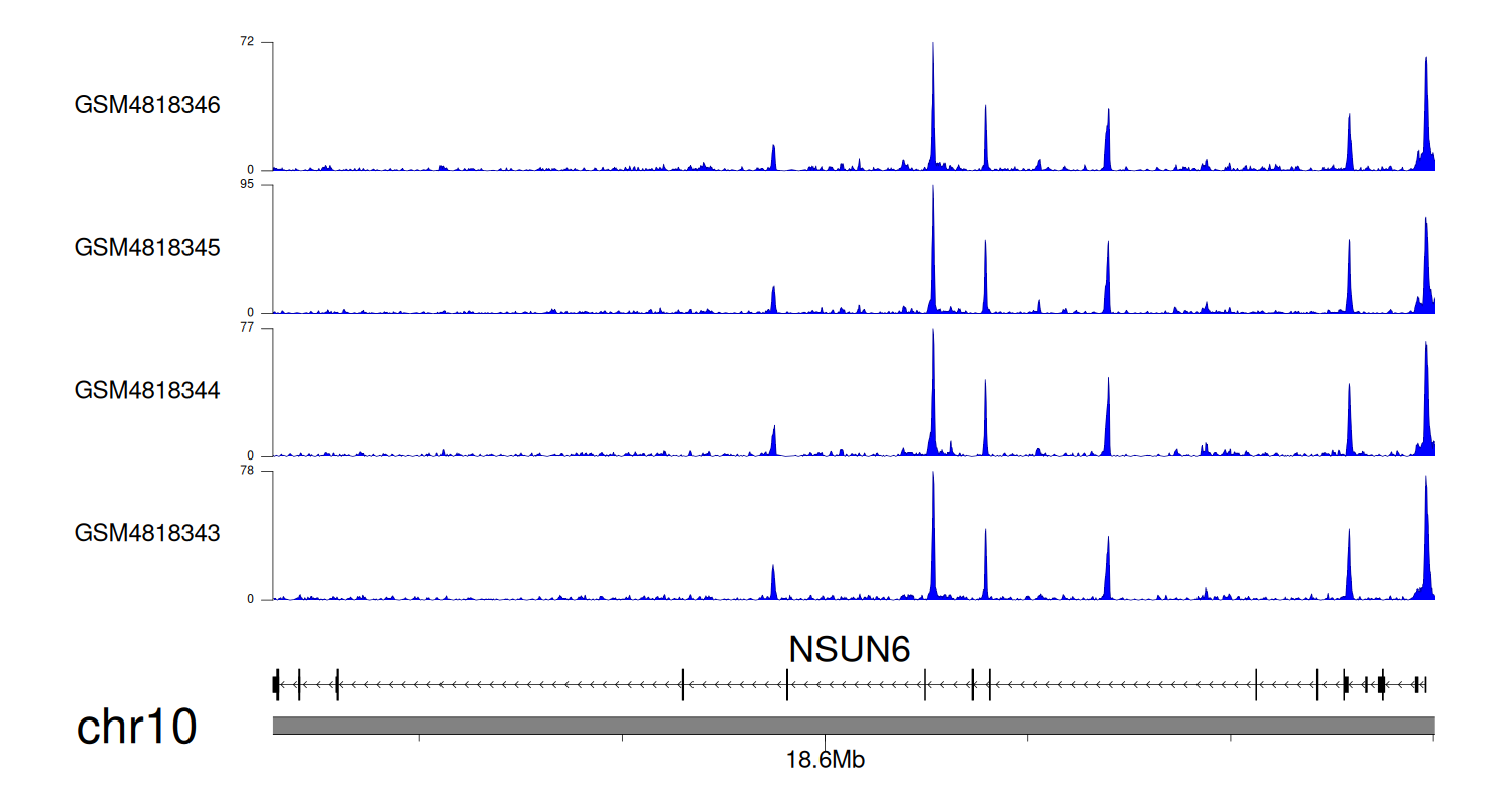 > Dataset: GSE131257 - NSUN6 peak across samples