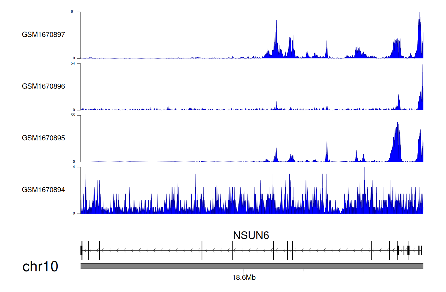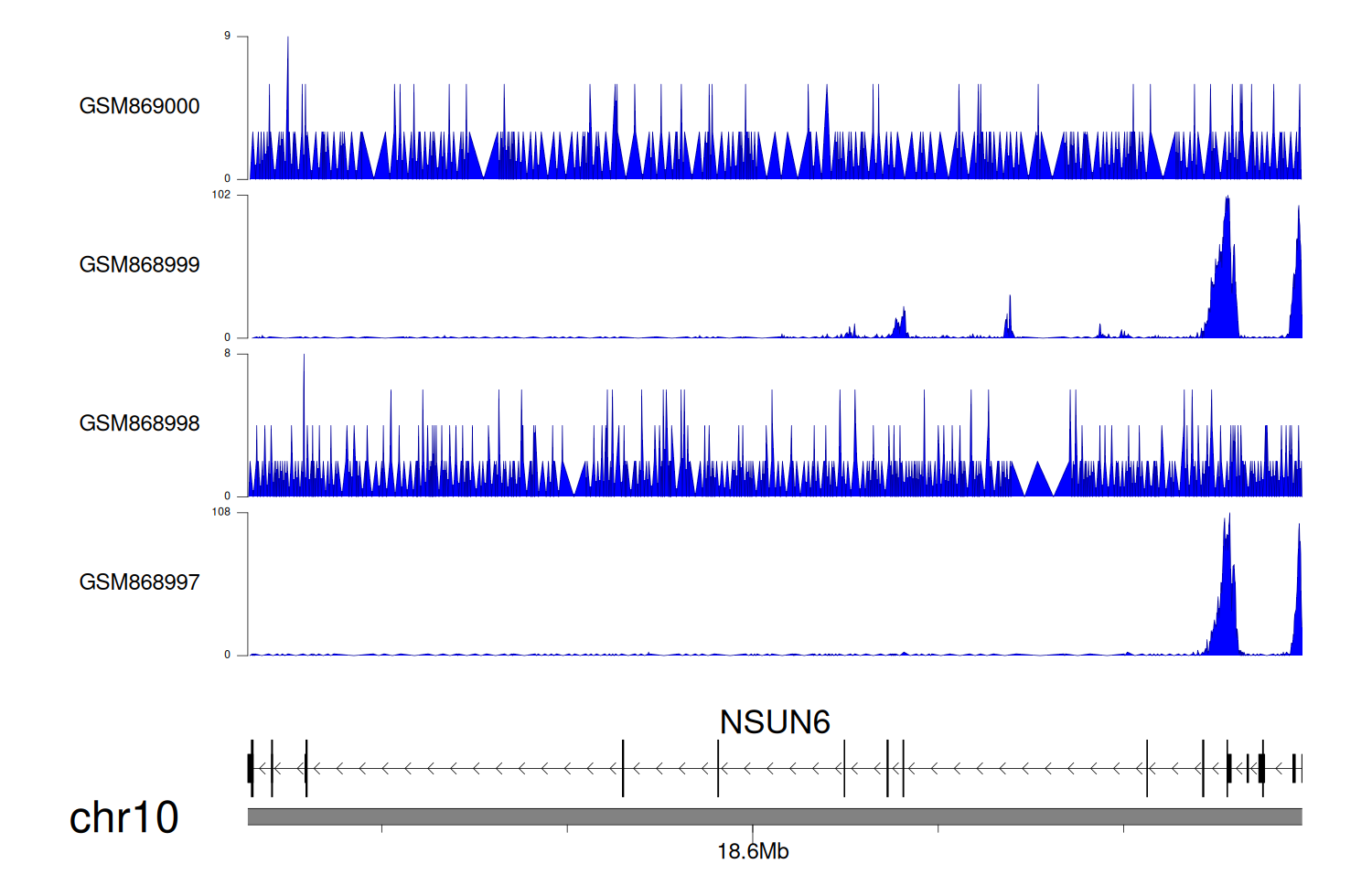 > Dataset: GSE68402 - NSUN6 peak across samples