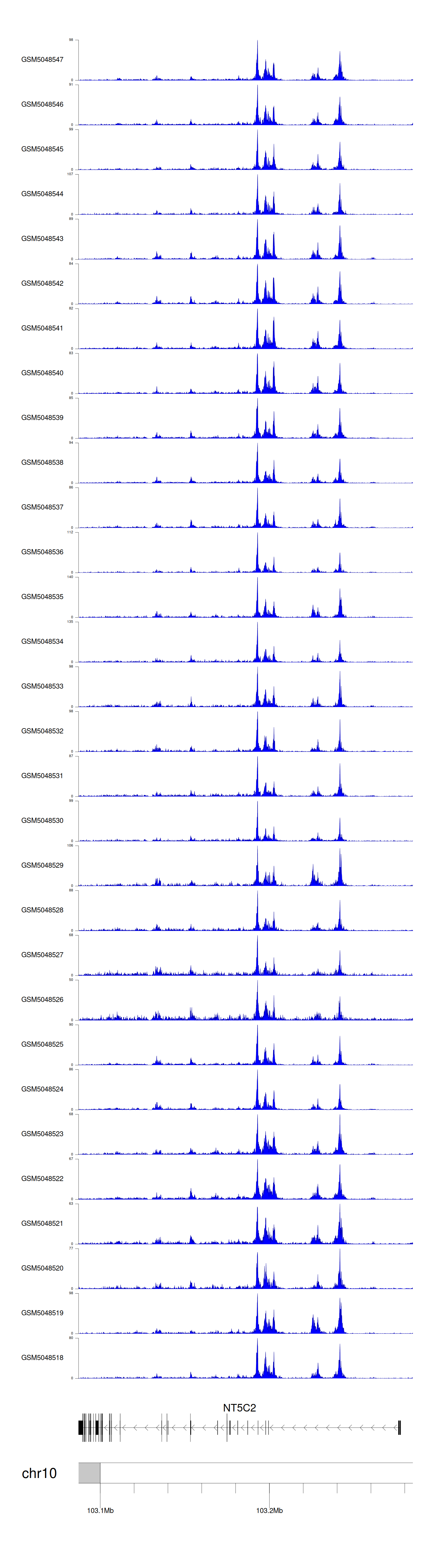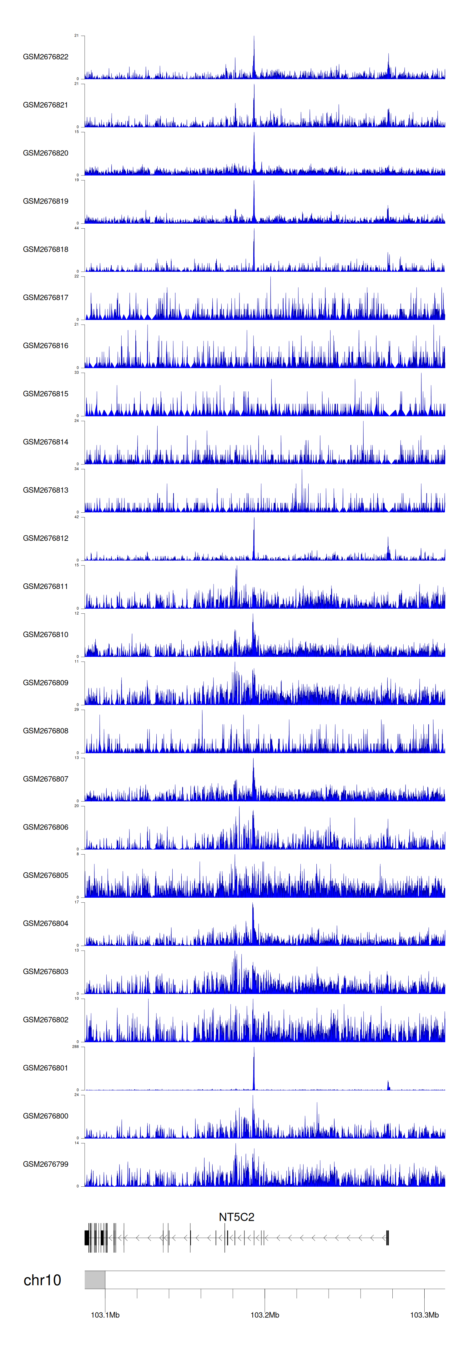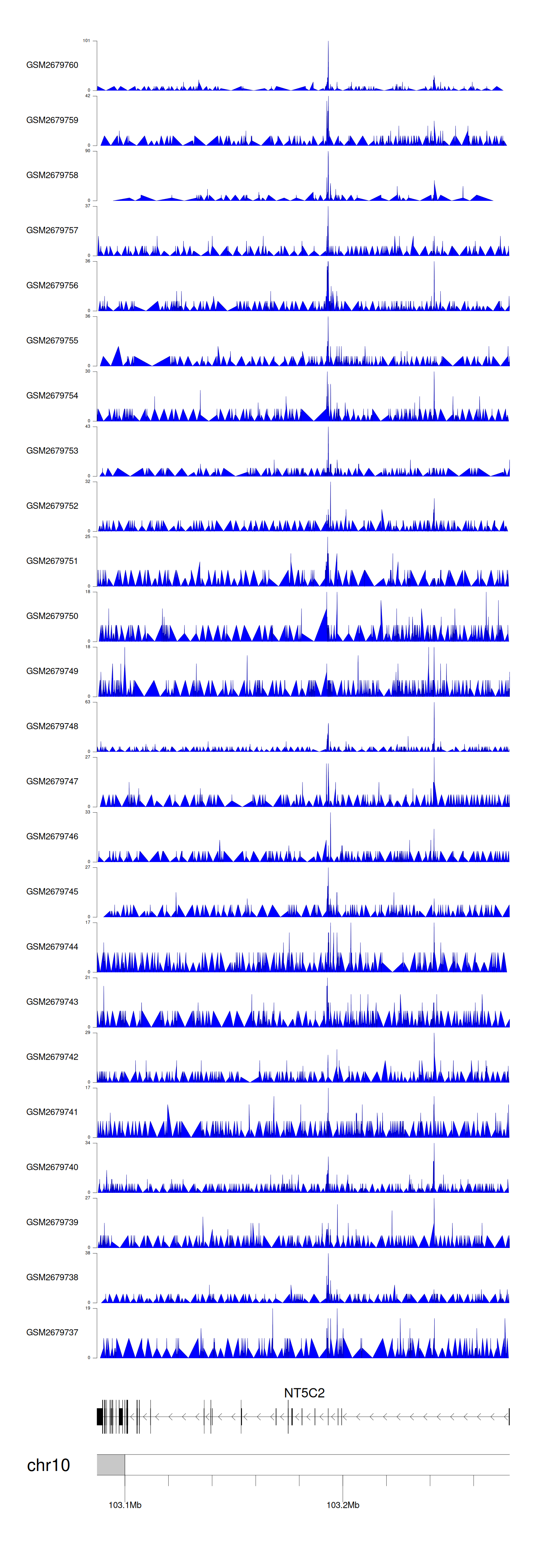 > Dataset: GSE100376 - NT5C2 peak across samples