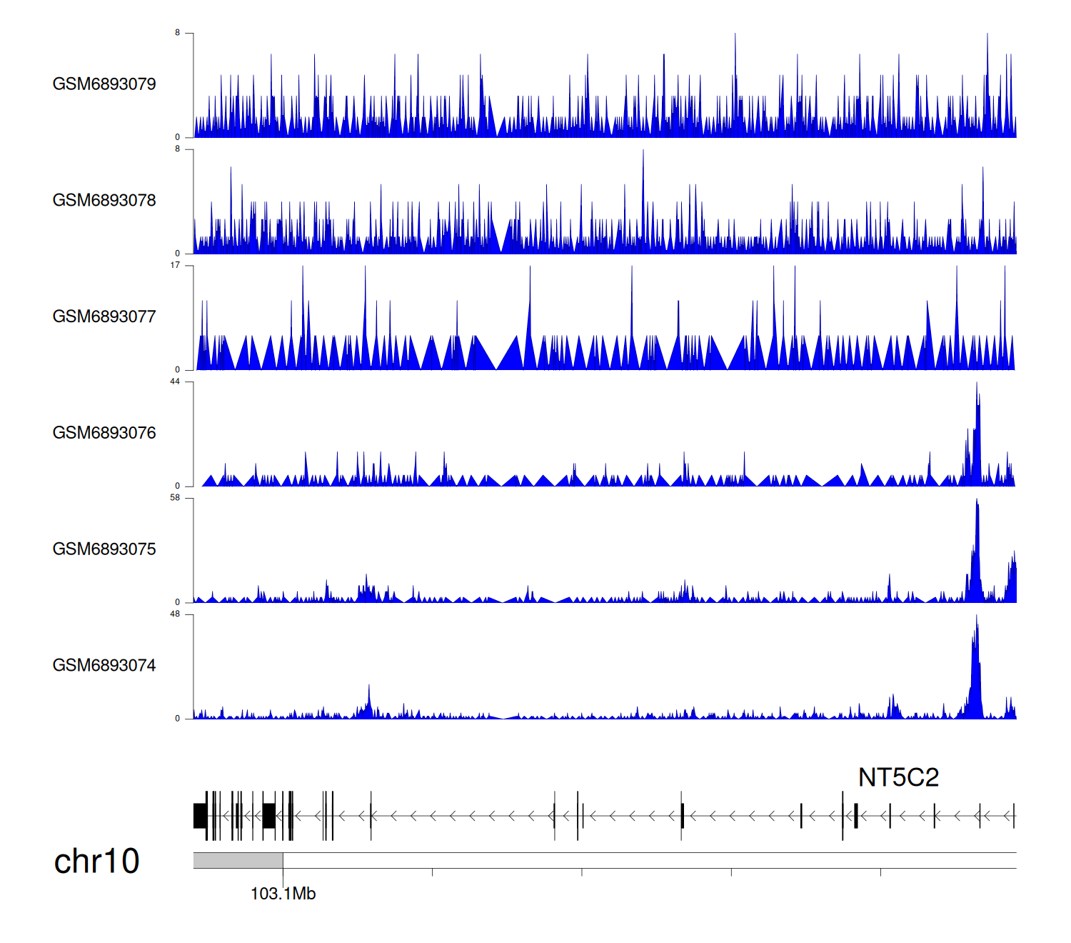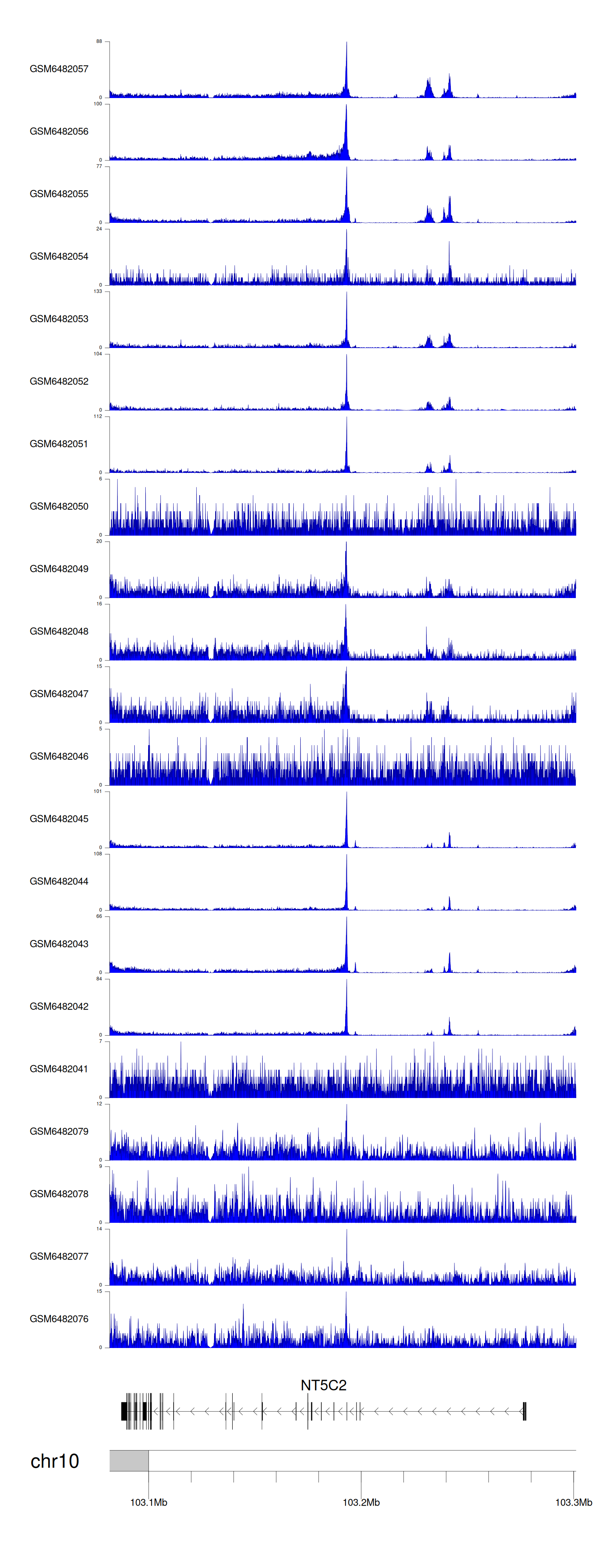> Dataset: GSE165703 - NT5C2 peak across samples