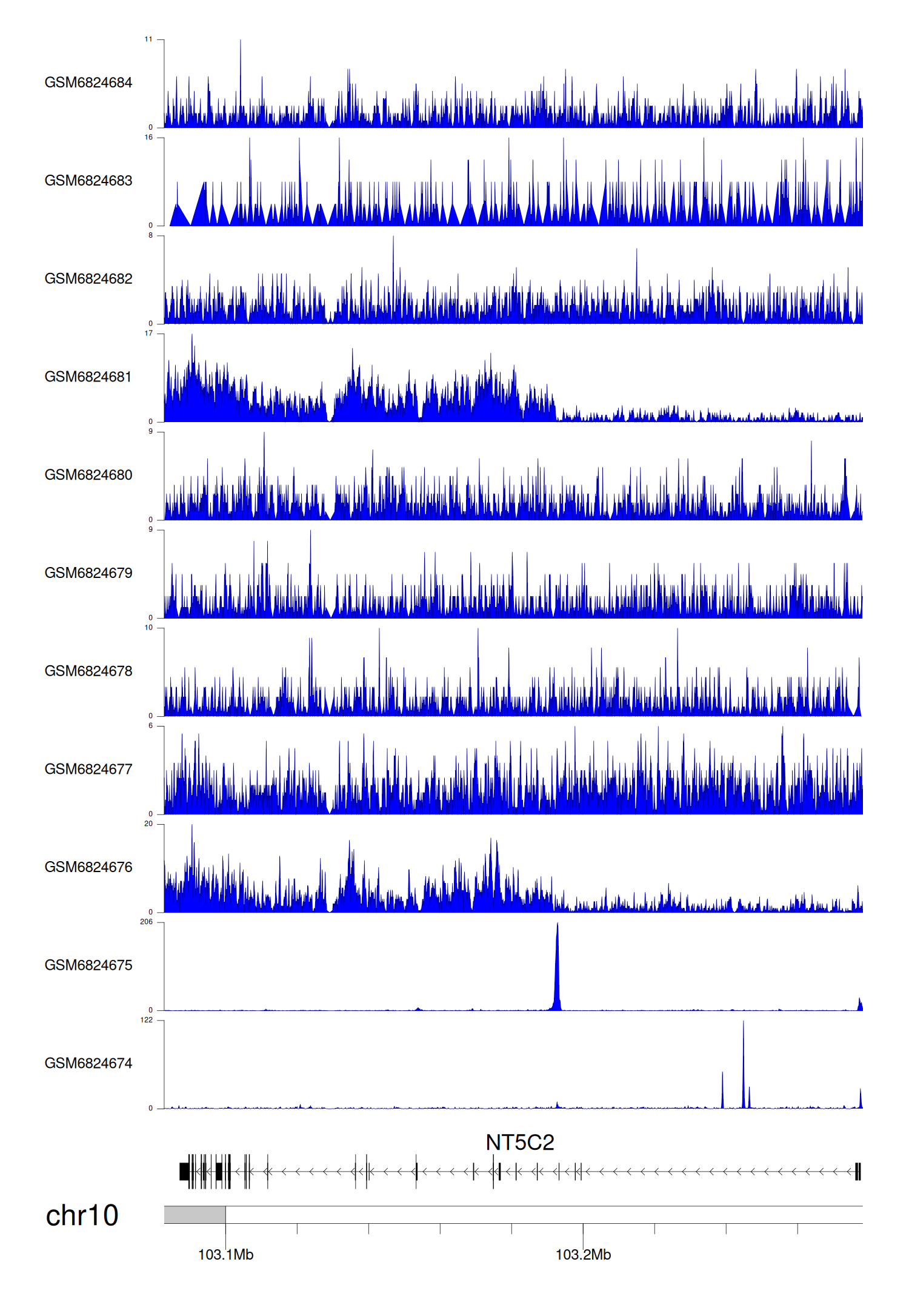 > Dataset: GSE221688 - NT5C2 peak across samples
