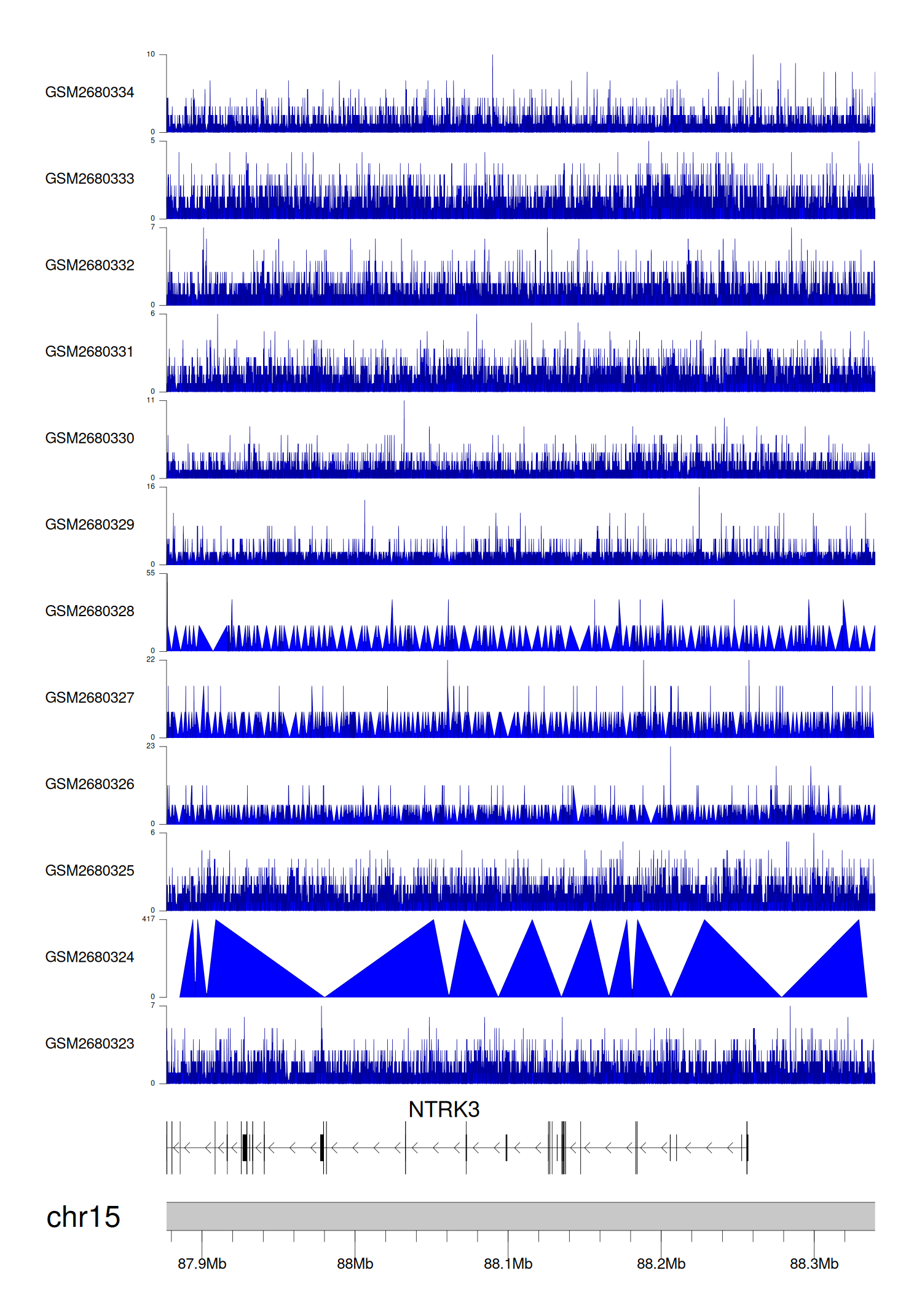 > Dataset: GSE100400 - NTRK3 peak across samples