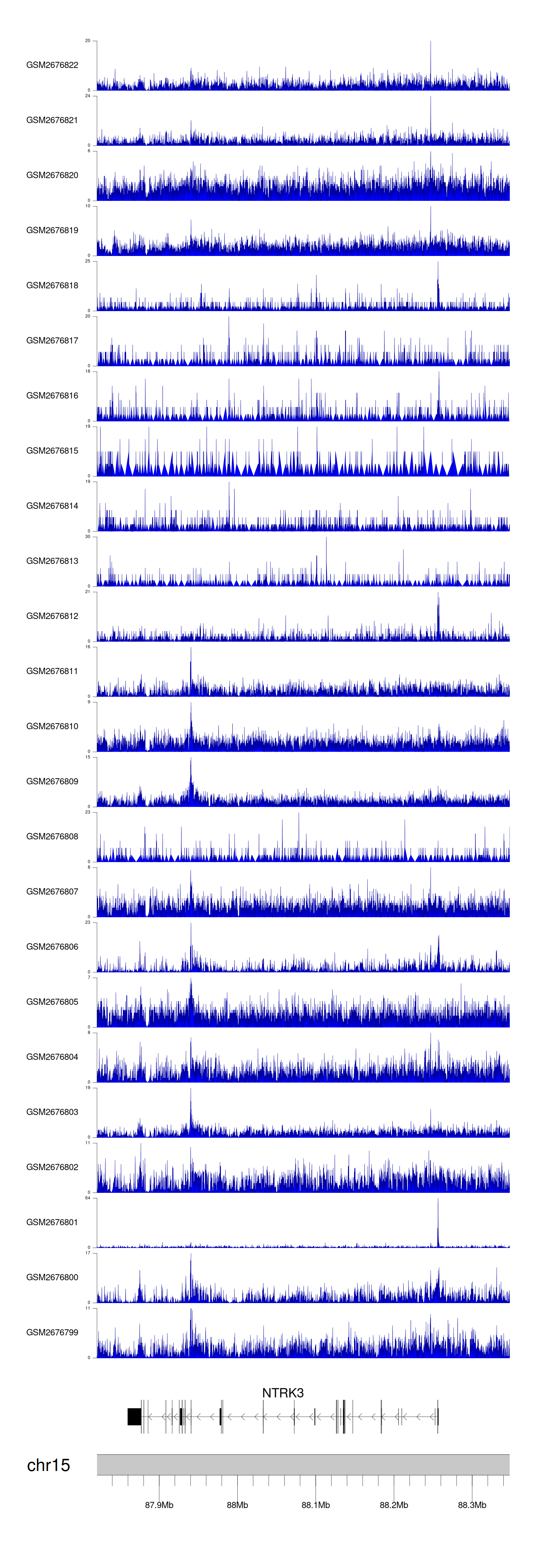 > Dataset: GSE100376 - NTRK3 peak across samples