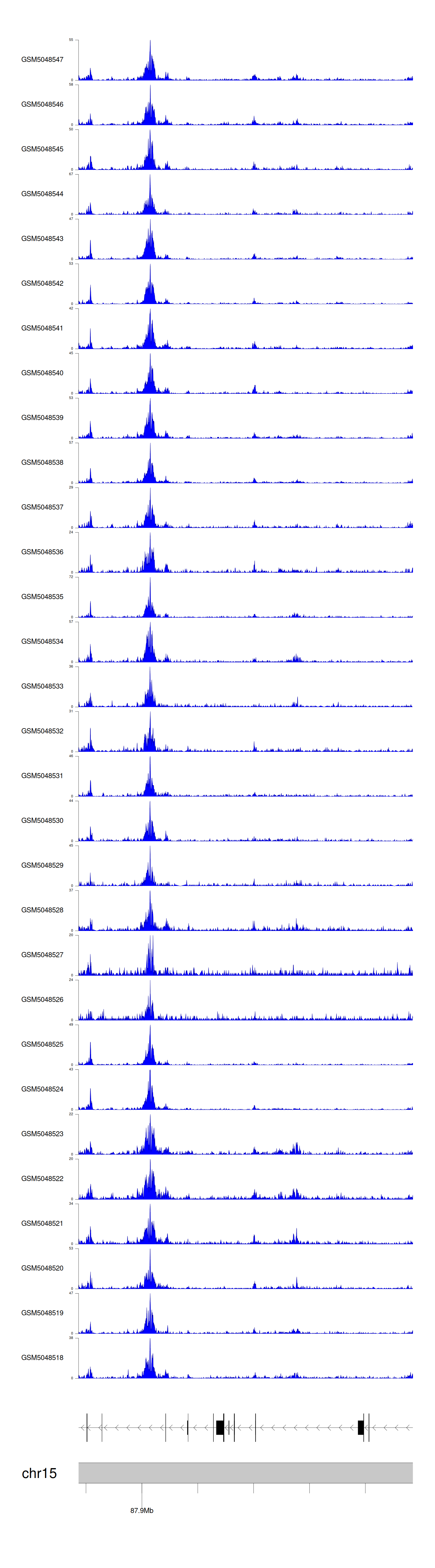 > Dataset: GSE165705 - NTRK3 peak across samples