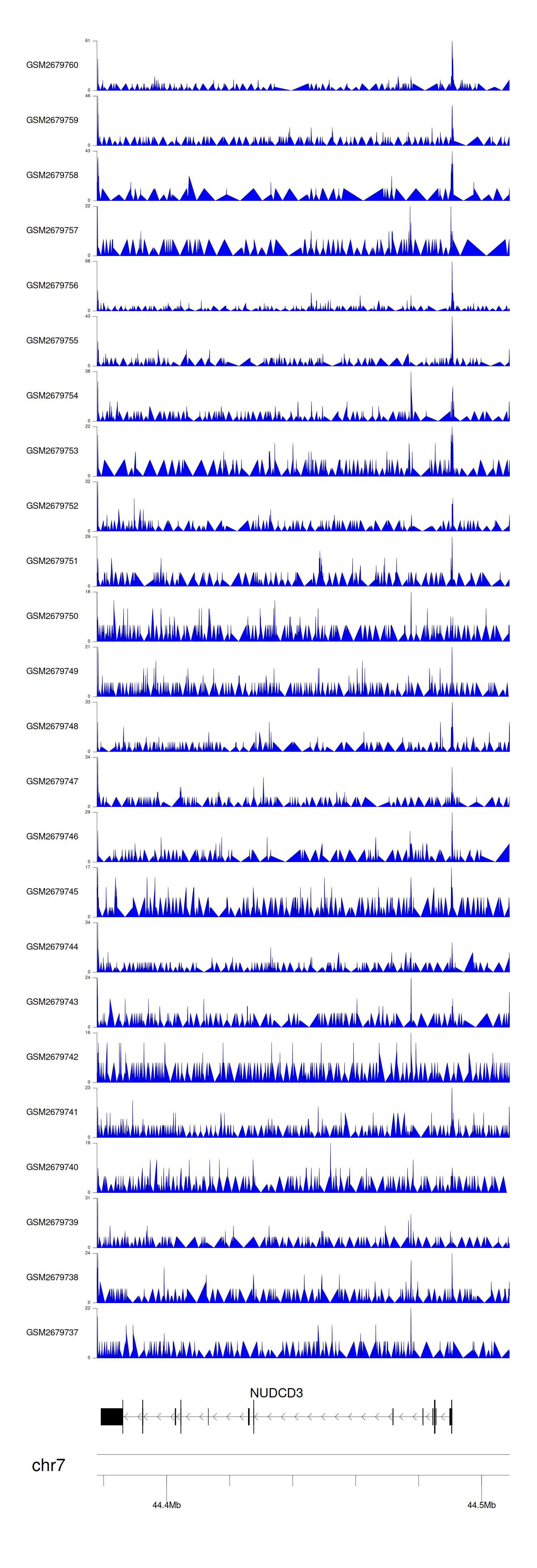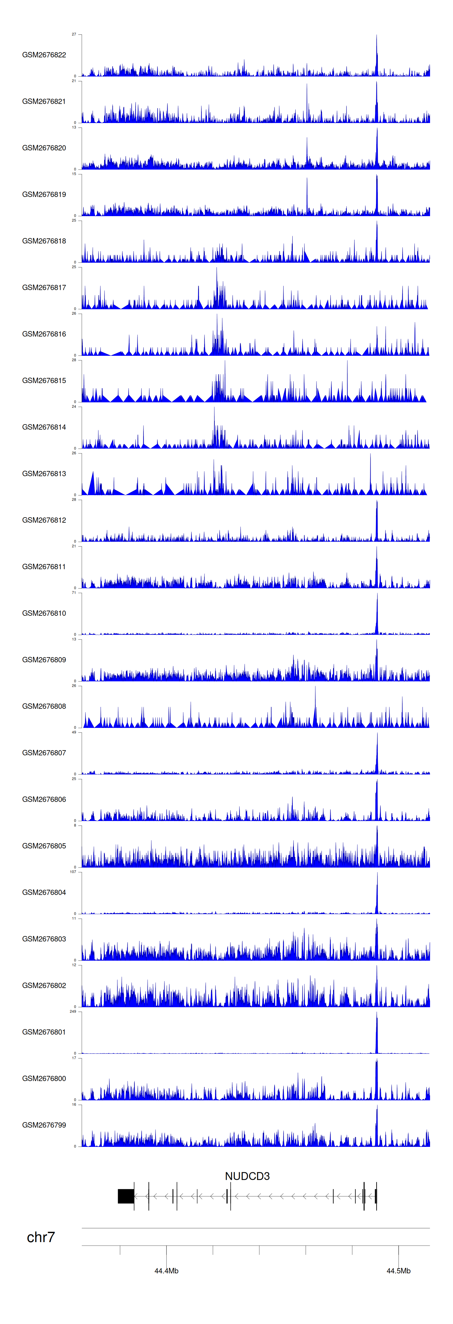 > Dataset: GSE100376 - NUDCD3 peak across samples